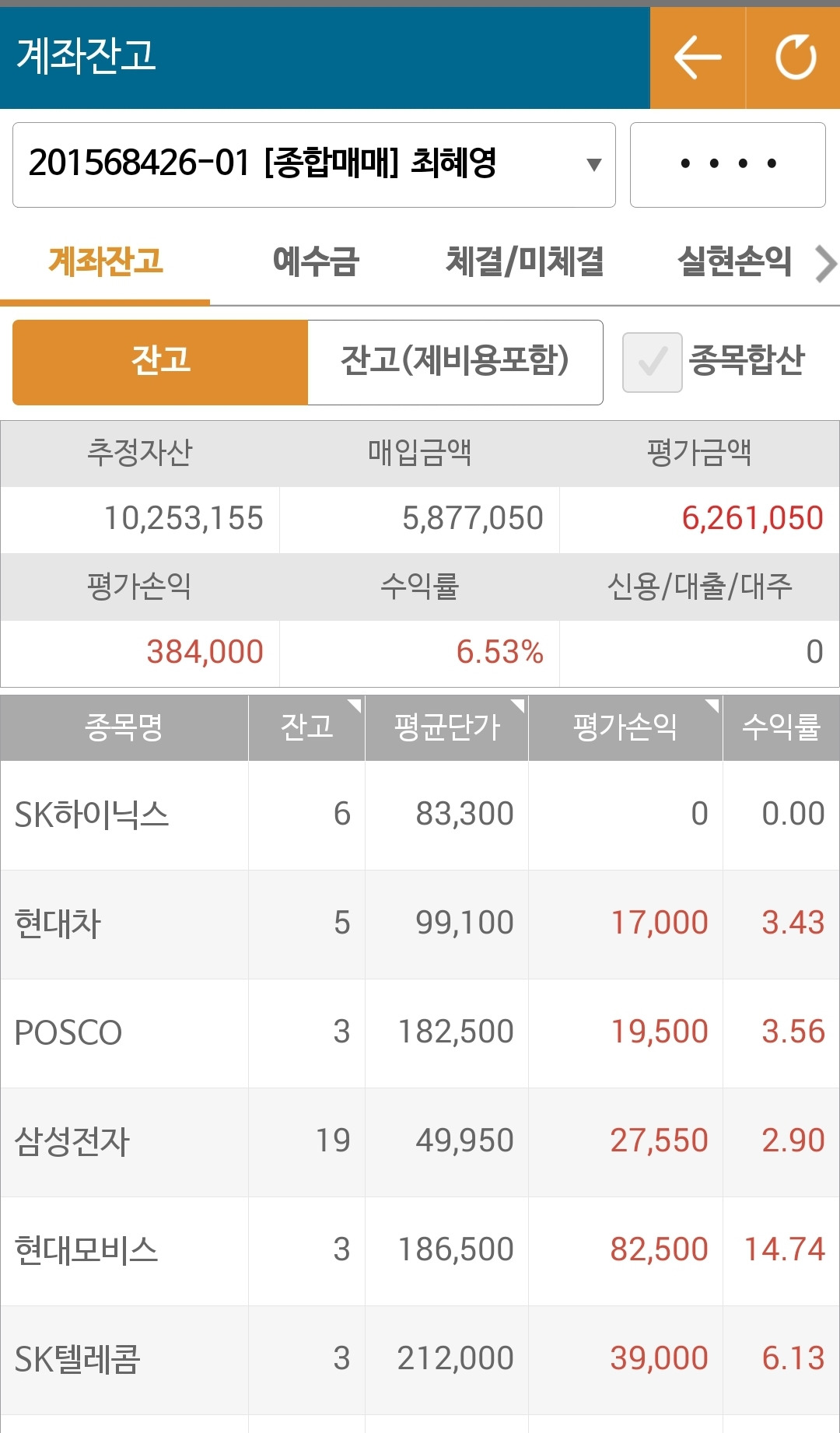 나의 투자금액은 딱 천만 원. 수익이 이십오만 원 나고 있다. 정리한 게 아니니까 확실한 나의 수익은 아니지만 하루 중 딱 십 분만 투자하여 이 정도면 괜찮다. 하하 자, 그럼 계좌 잔고에 있는 종목 순서대로 오늘의 차트를 감상하고 자도록 하자. 출발~