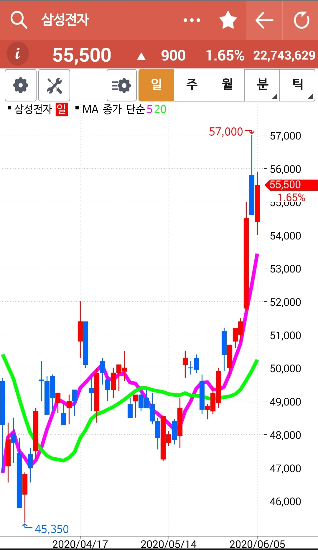 삼성전자. 와우 멋지게 빵빵. 걱정 무.