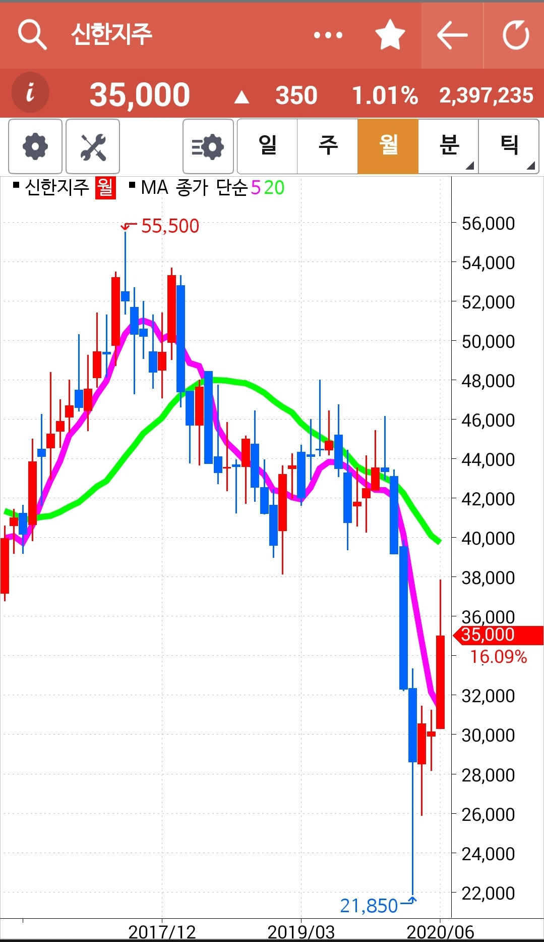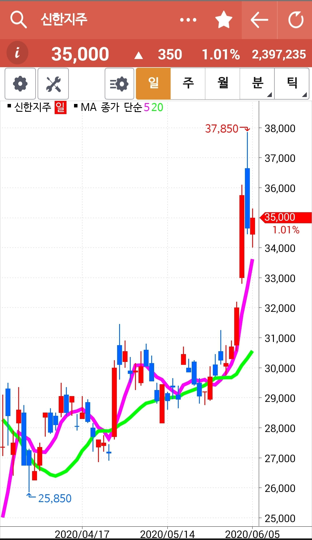 신한지주. 잘 올라가고 있으니 걱정 끝!
