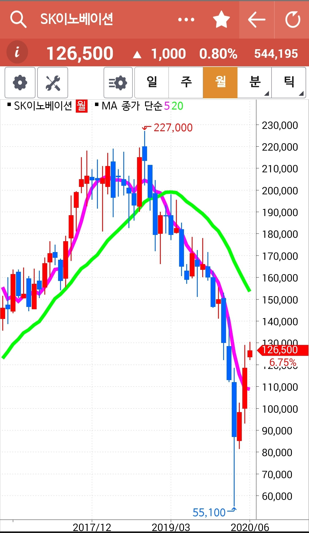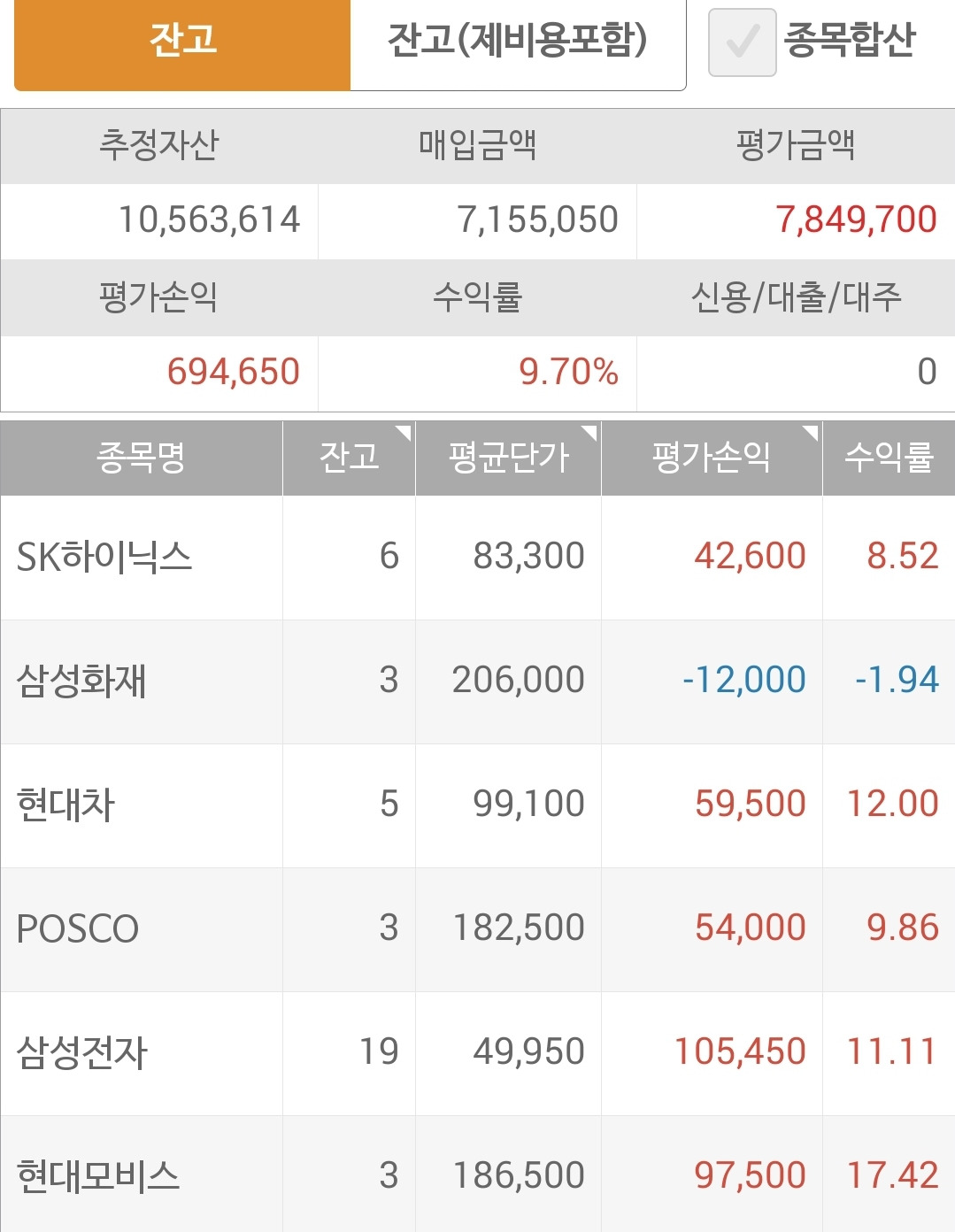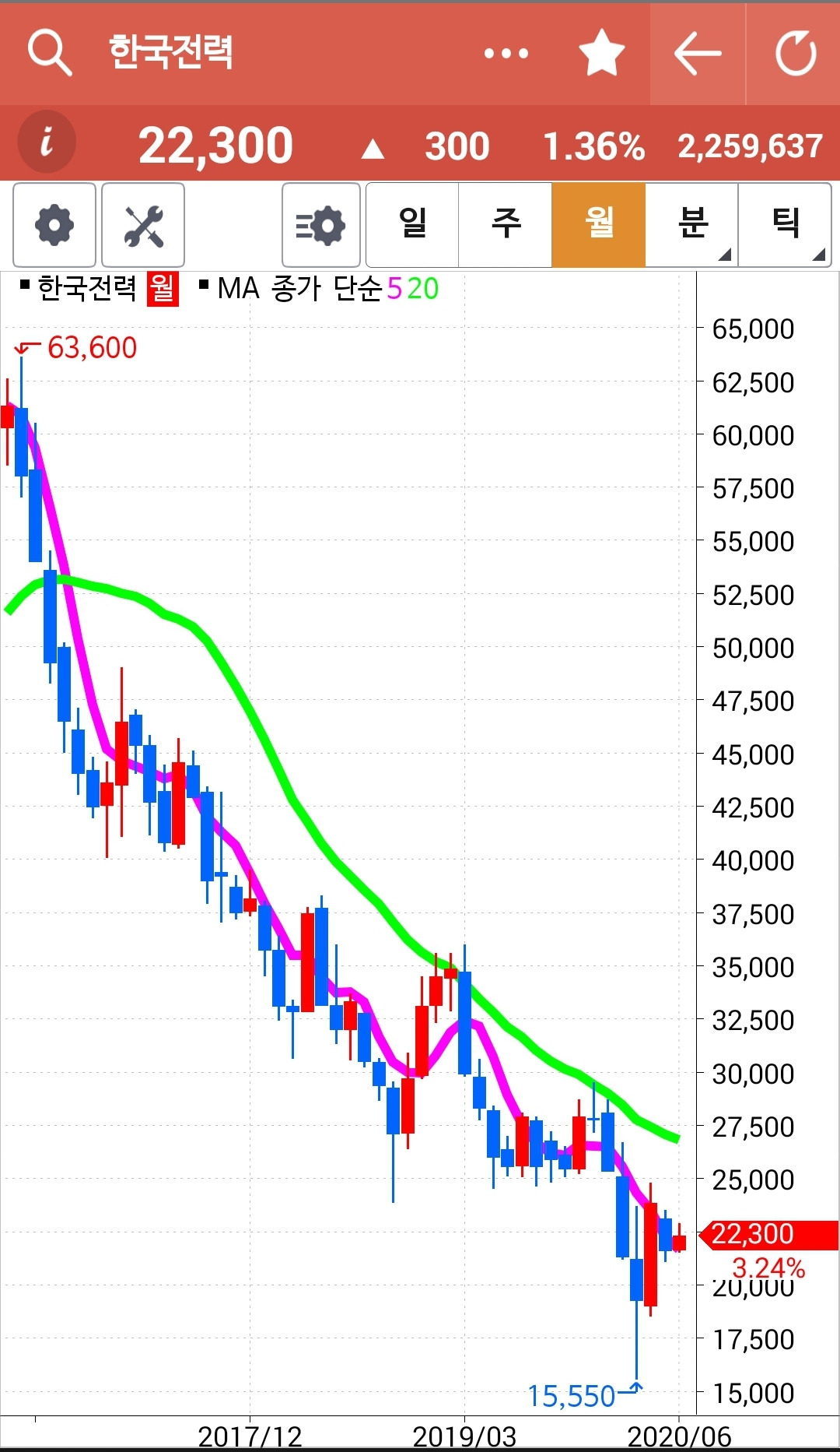 나의 투자금액 천만 원. 수익 56만 원 정도. 계좌에 남아있는 종목 순서대로 차트를 감상하자.