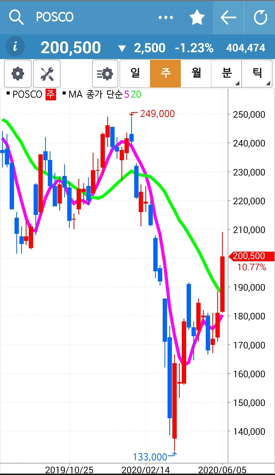 포스코. 5일선 위로 빵빵. 좋아요. 주가는 내려갔어도 5일선 위에 있으니 매수 유지. 도대체 왜 이리 종목이 많으라? 나의 관심종목 거의 다가 골든크로스를 기록하고 있기 때문이다. 올라갈 때 신나게 올라가렴. 파이팅.