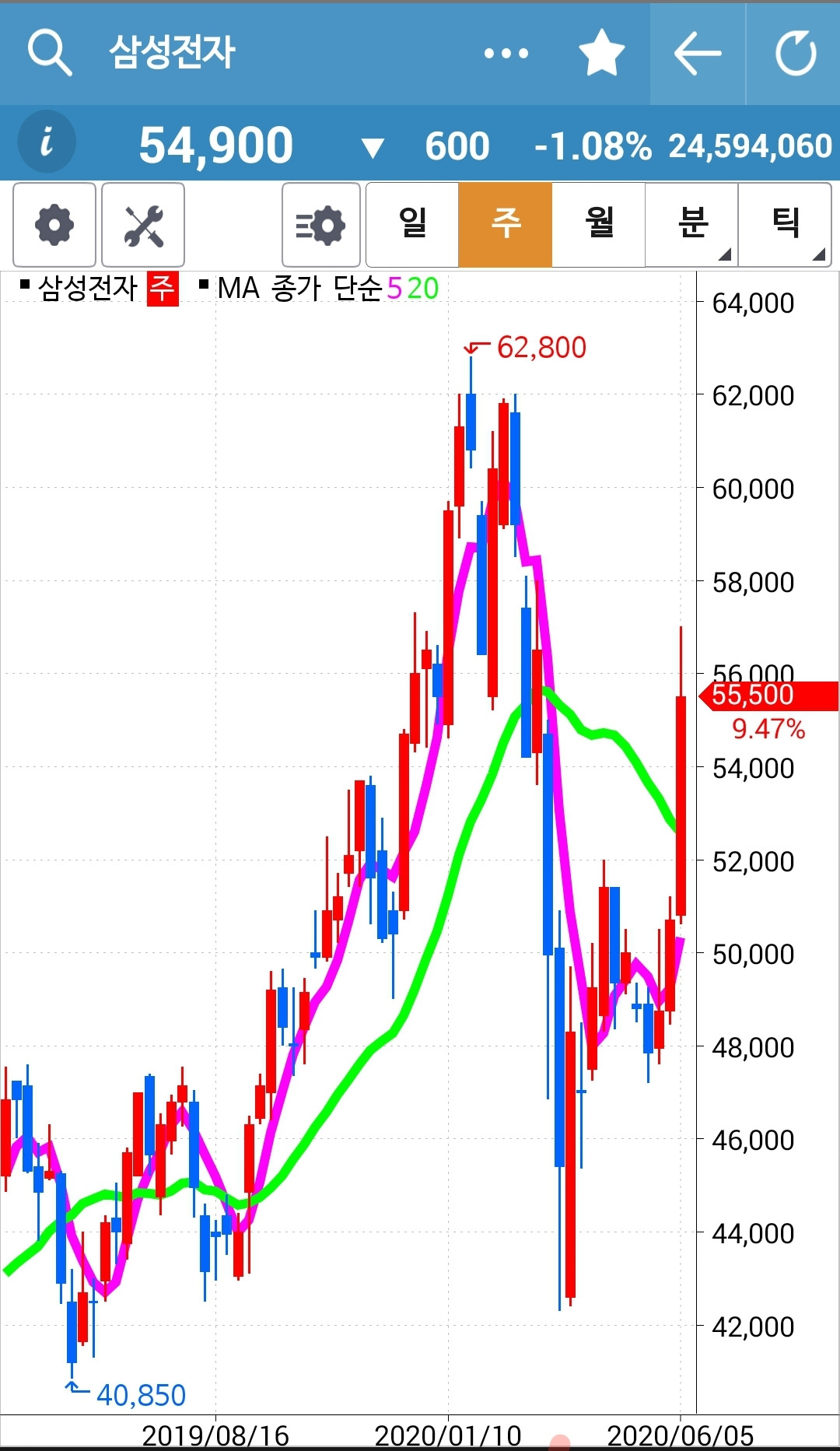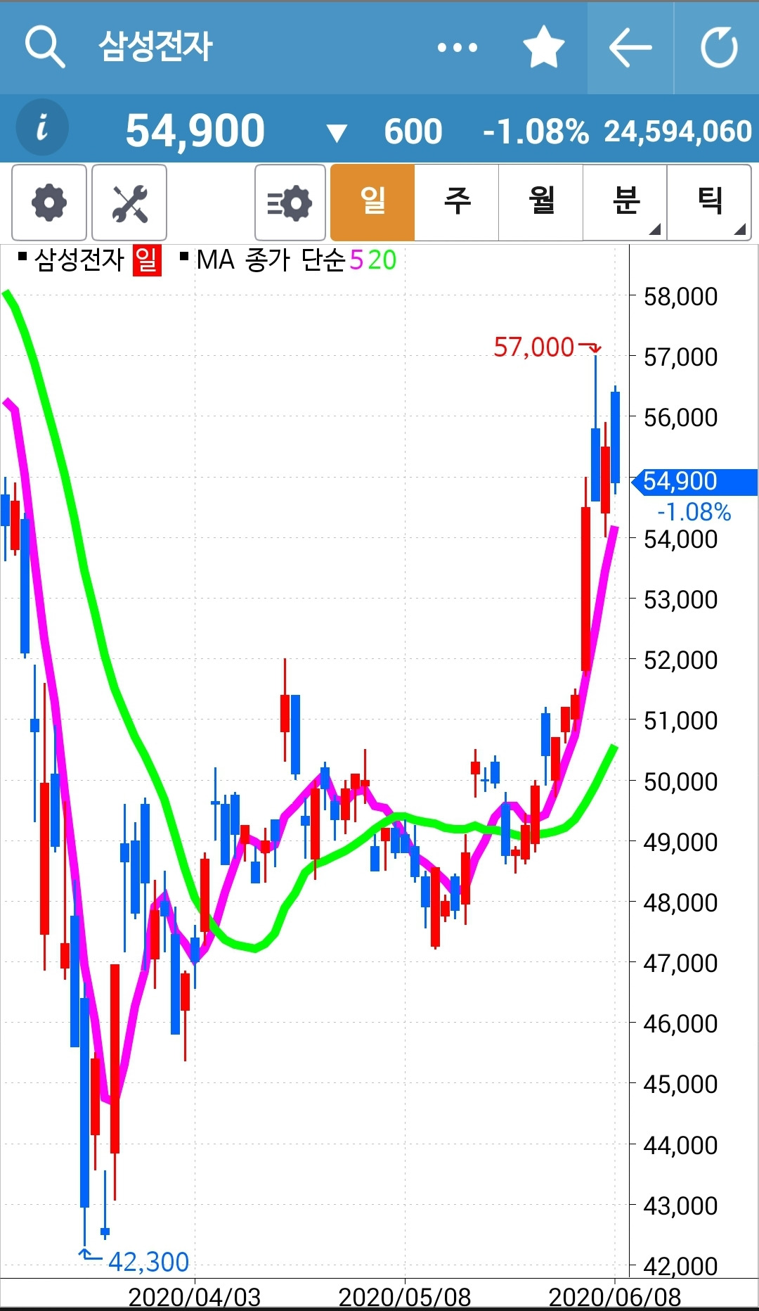 삼성전자. 음봉이지만 5일선이 위에 있으니 오케이!