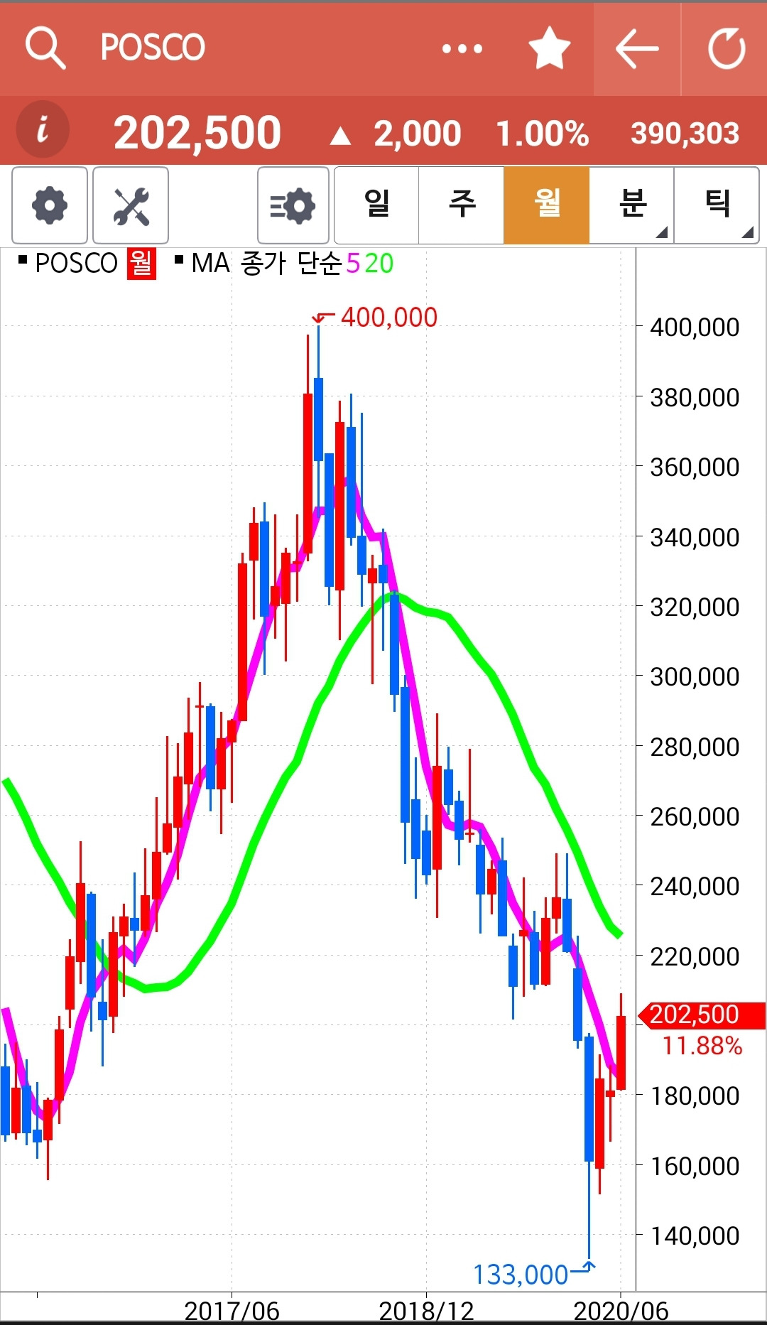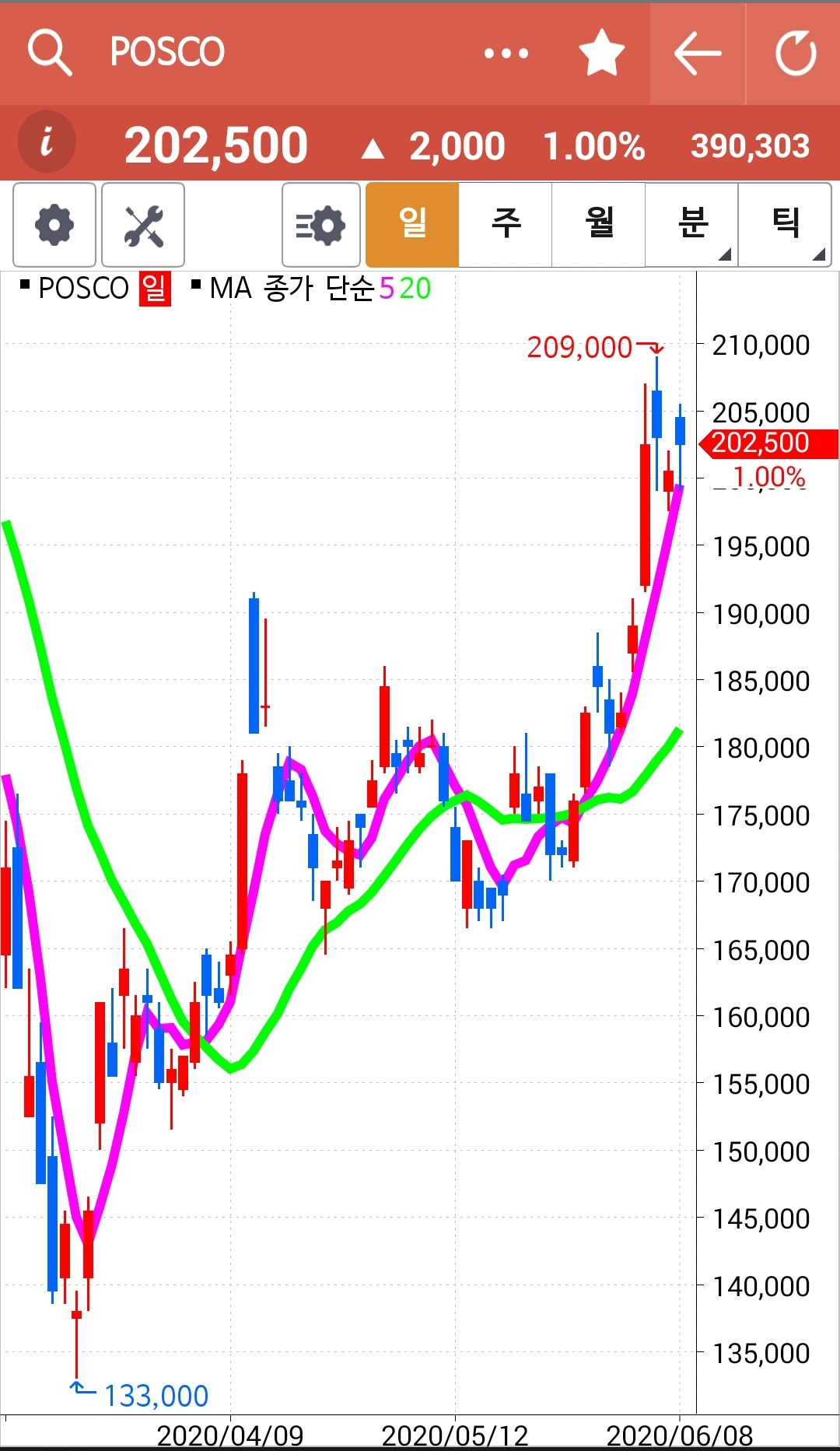 포스코. 올랐지만 음봉. 그래도 5일선이 위니까 나에겐 문제없음. 패스.