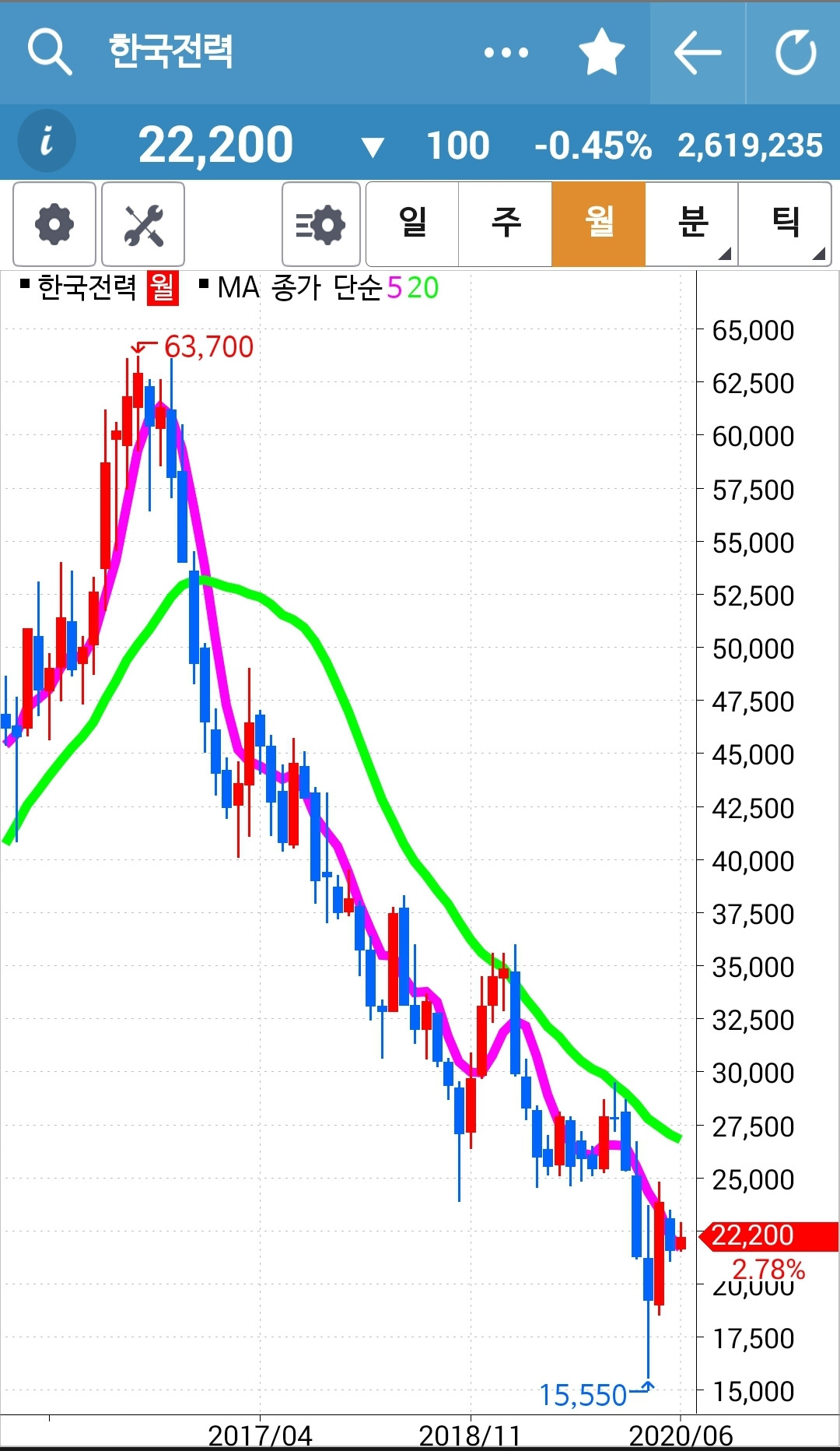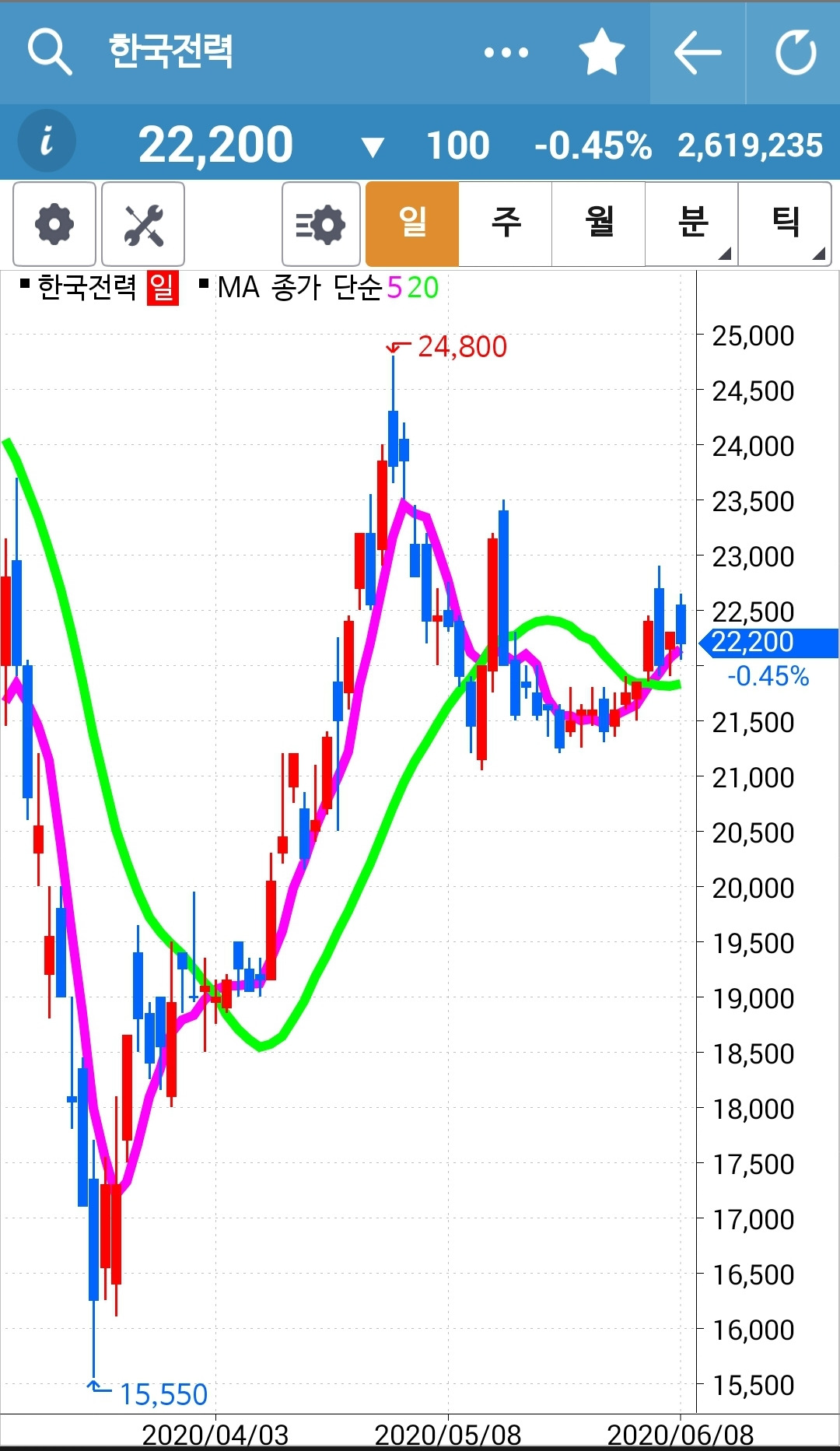 한국전력. 갈 길이 바쁜데 와이 음봉. 하 그래도 5일선이 위에 있으니 걱정을 말자. 파이팅.