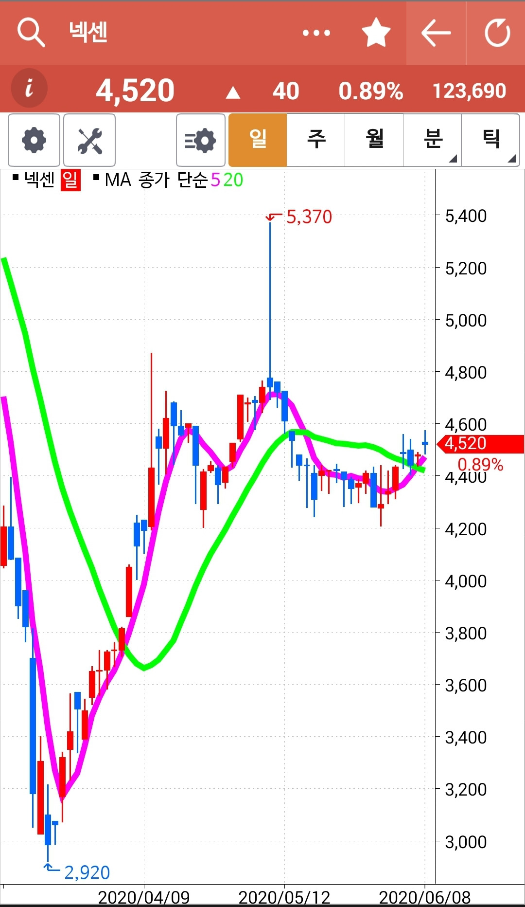 5일선이 위로 올라왔으니 자동 빵으로 매수! 오케이. 잘했쓰.