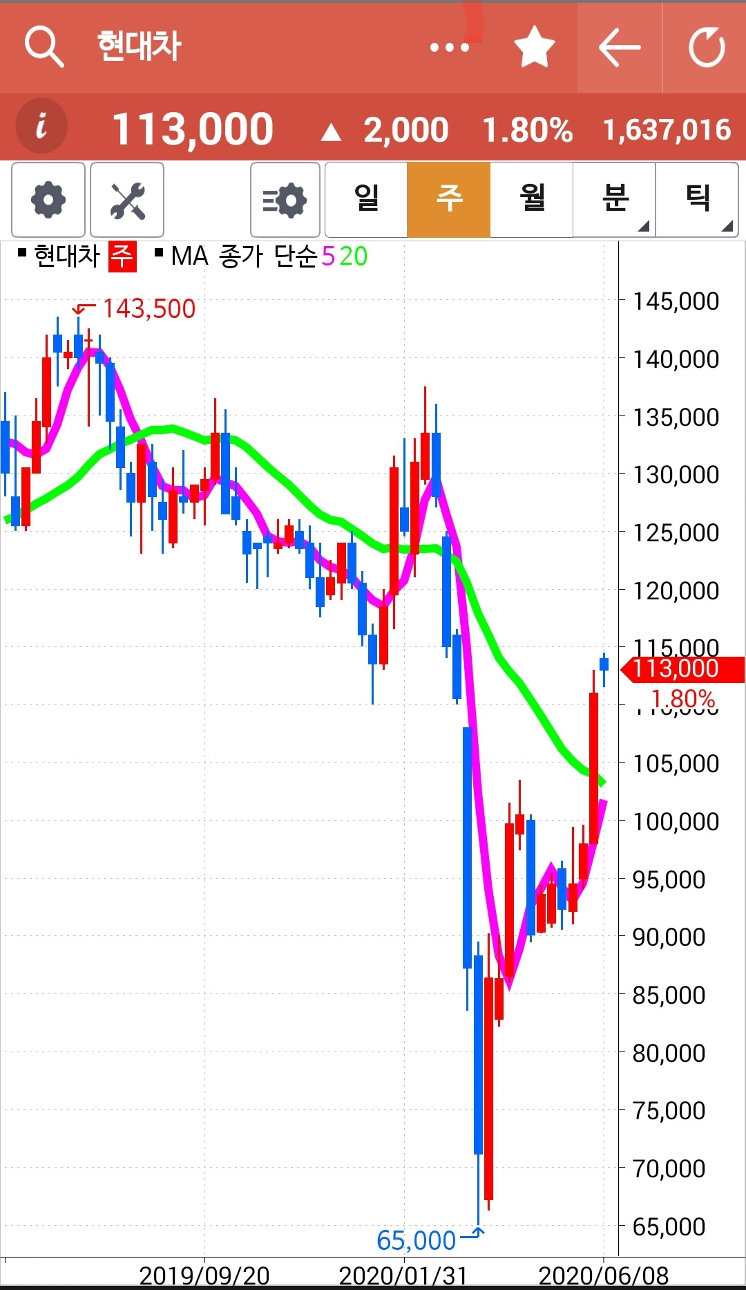 현대차. 음봉. 그러나 5일선 위니까 괜찮아. 패스.