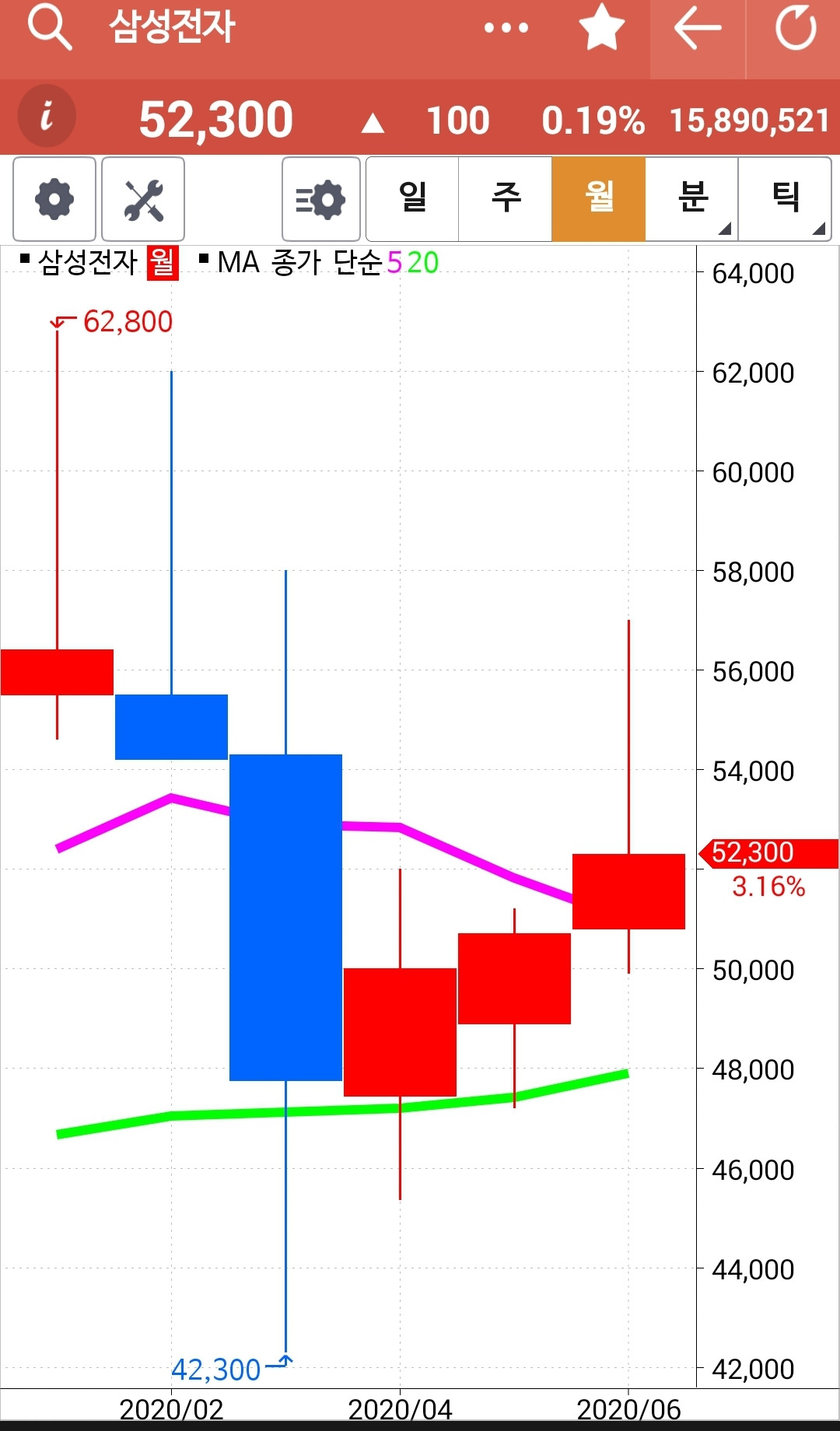 주봉 월봉은 상관 않는다. 아무리 그쪽이 좋다 해도 내가 지키기로 한 원칙은 일봉 매매다. 5일선이 20일선 아래로 내려왔다. 아주 살짝이지만 내려온 건 내려온 거다. 탈락!!!