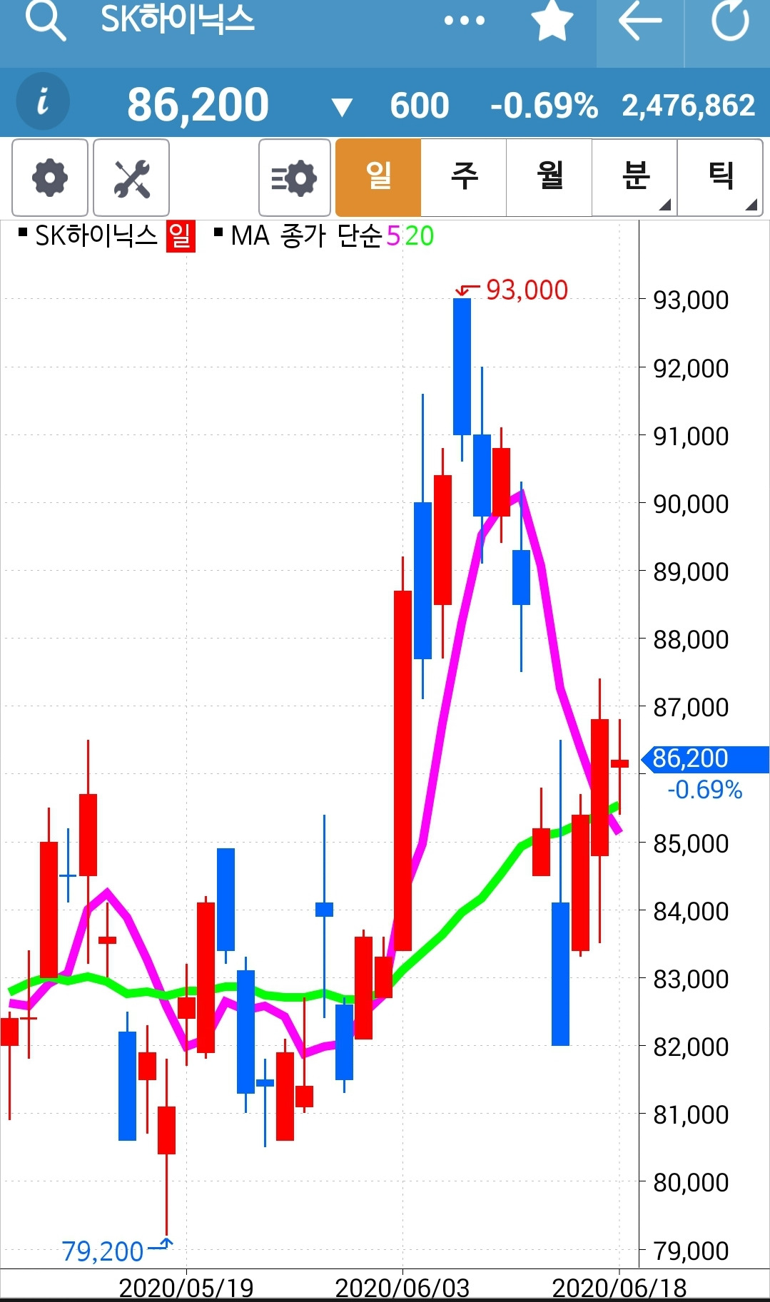 오늘 탈락한 종목이다. SK하이닉스와 삼성전자. 아쉽지만 어쩌랴. 원칙을 지켜야 하는 걸. 난 그 훈련 중인 걸. 모든 감정을 없애고 난 기계가 된다. 난 아무것도 몰라요~ 5일선이 20일선 아래로 내려가면 매도할 뿐야요~
