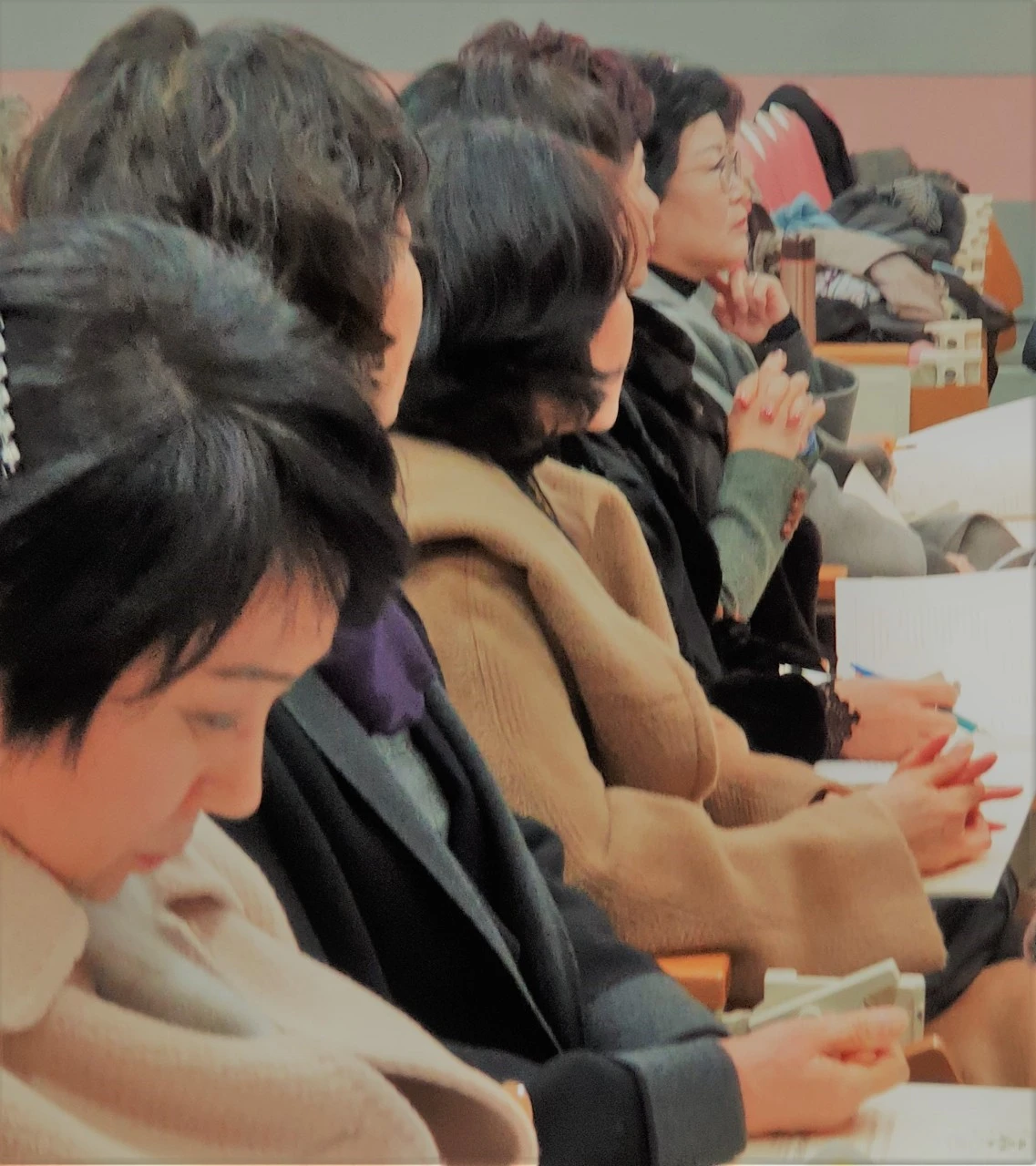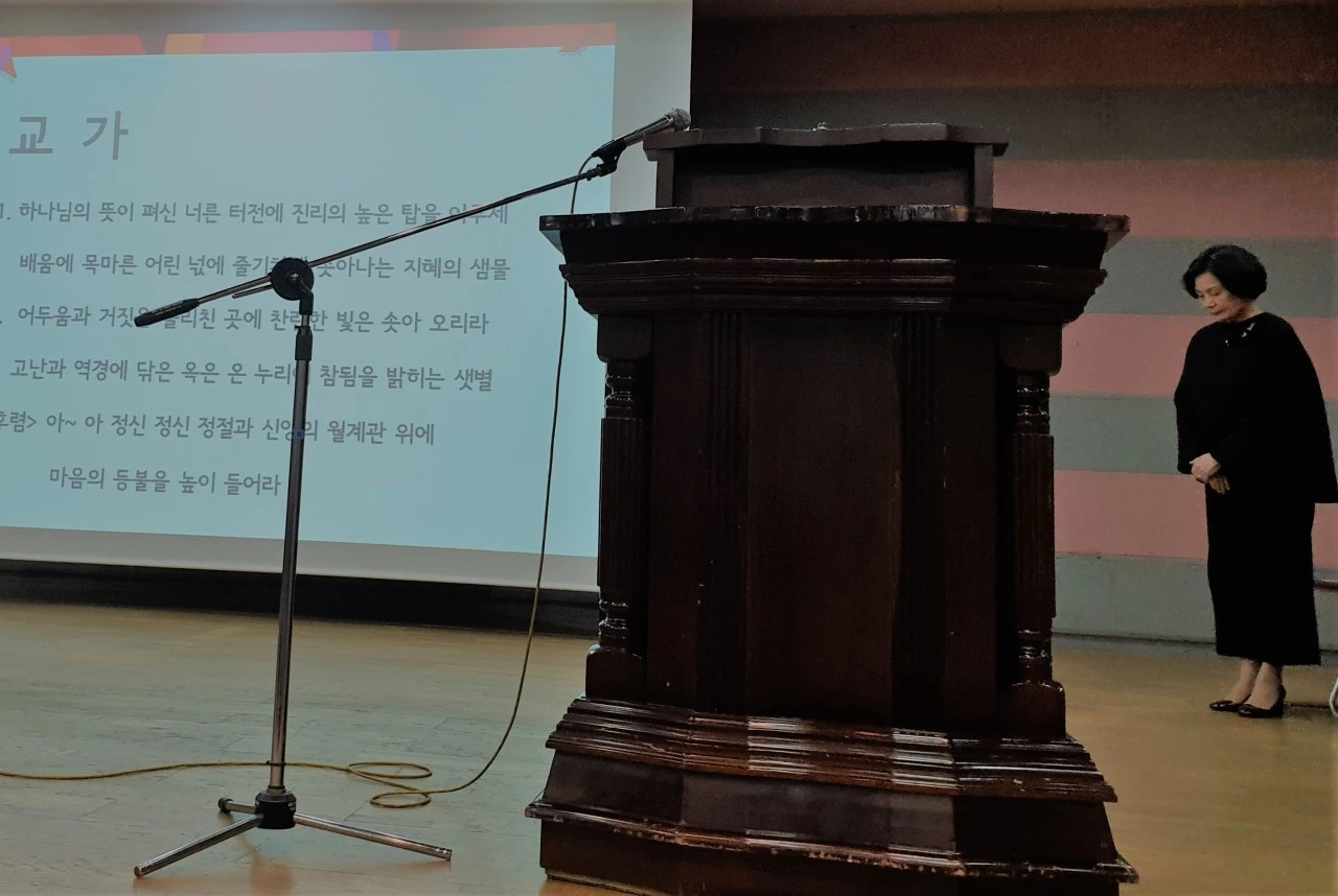 정신 믿음의 학교답게 모든 행사에 앞서 예배가 시작된다. 60기 최연신 목사님의 인도로 개회 예배가 시작된다. 61기 이희숙 선배님의 기도에 따라 모두 눈을 감고 차분히 기도를 드린다.