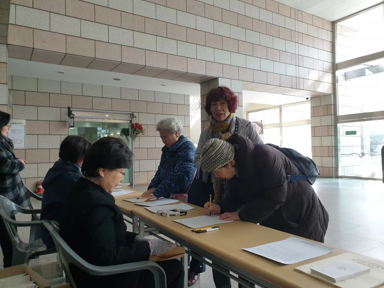 방명록을 작성하고 회비를 내고 기념품을 전달받는 손님 즉 우리의 선배님들. 그리고 특별히 '김마리아 선생 훈격 상승'을 위한 서명을 한다. 손님은 점점 몰려들고 우리의 손길은 더욱 바빠진다.
