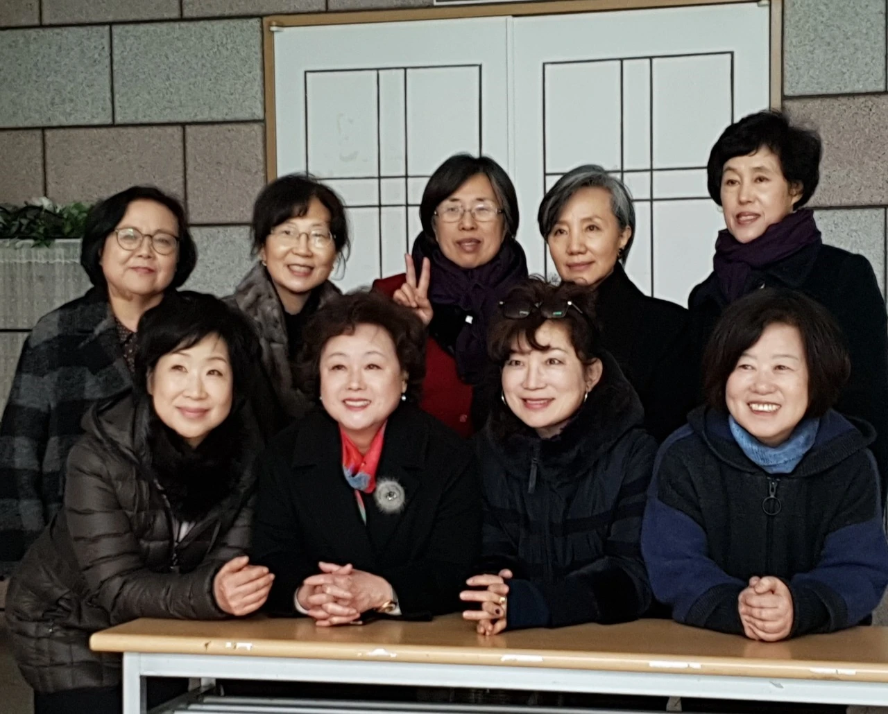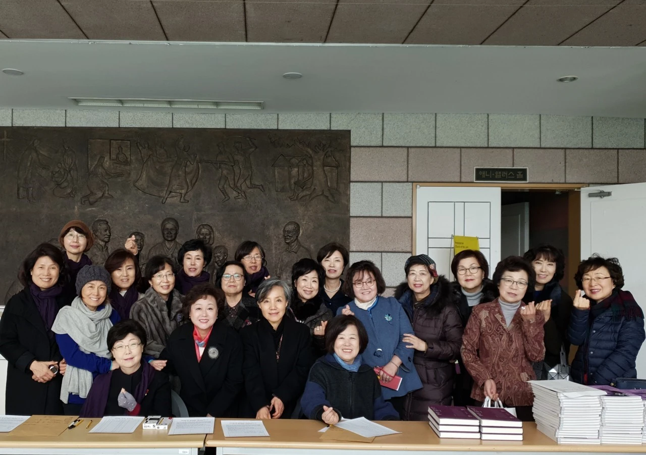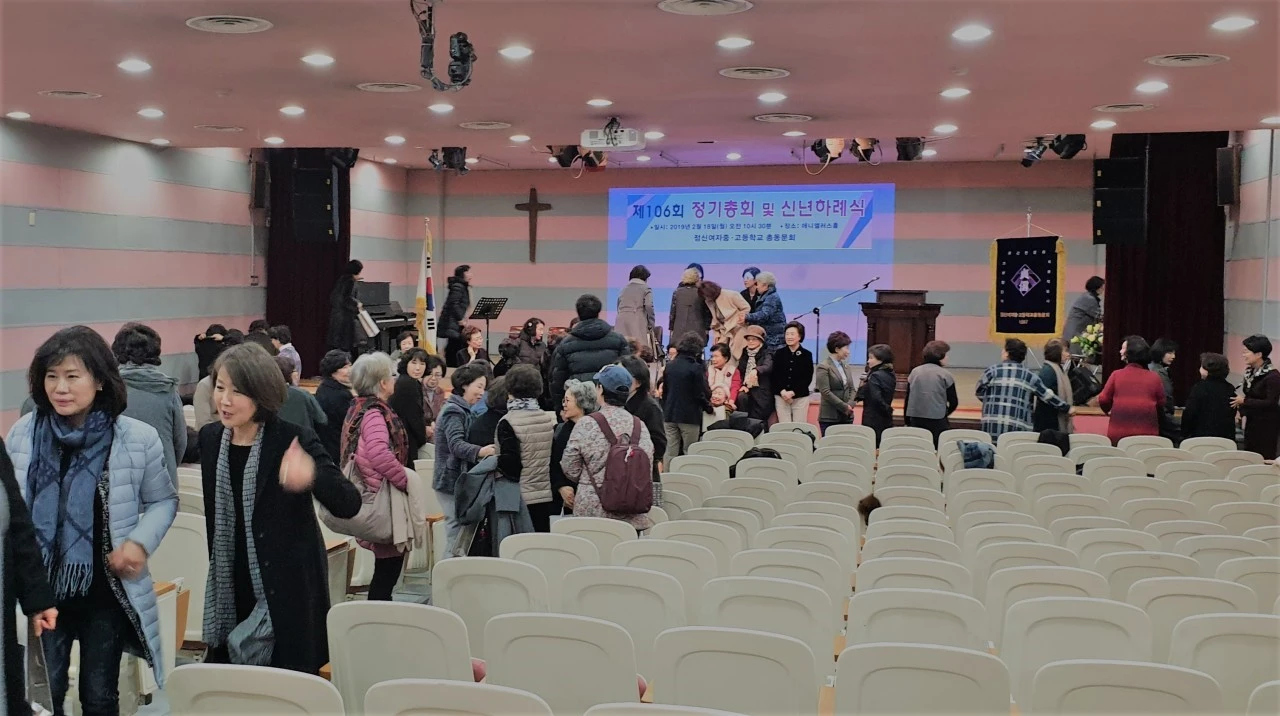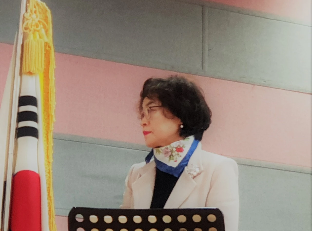 2019년 새 동문회를 이끌어갈 61기 김진선 선배님. 동문들 참여를 독려하여 동창회를 활성화시키고 정신여중고 교육활동을 지원하고 김마리아 기념사업회 적극 지원하는 것을 이번 동문회의 중요 방향이라 말하는 회장님. 많은 박수와 축하를 받는다.
