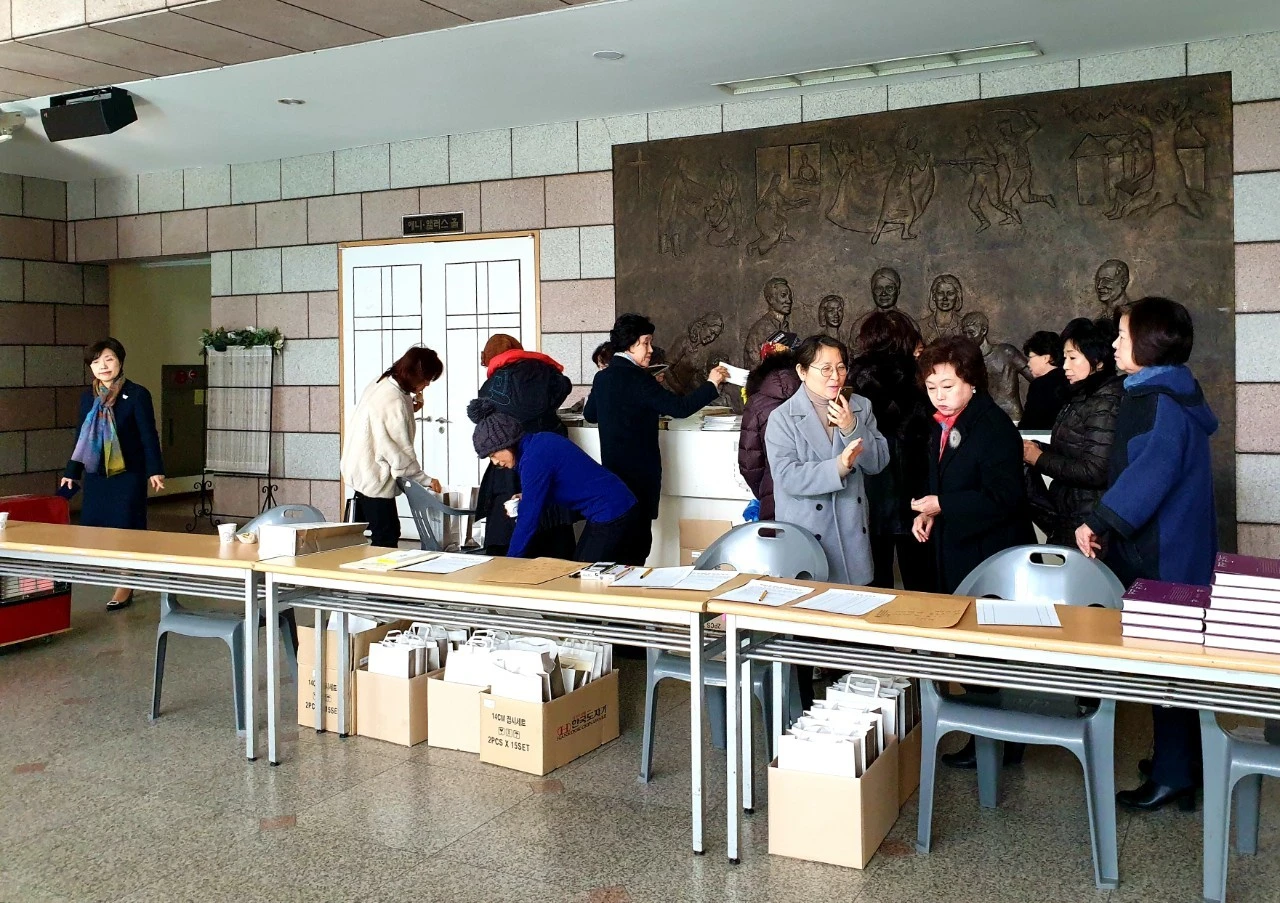 2 년에 한 번씩 발간되는 정신 잡지와 정기 총회 보고서, 메모지 그리고 최연신 목사 따님이 연주한 귀한 CD까지를 봉투 안에 넣어 안내 데스크 옆에 착착 줄 세워 놓는 것이 다였다.