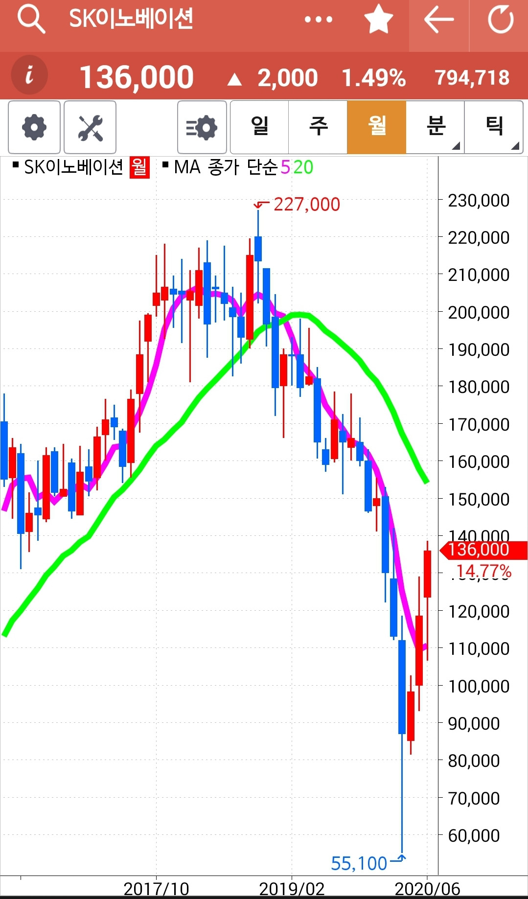SK이노베이션. 오홋. 상승 끝자락에 나타난다는 교수형 아닌가? 푸하하하 어쨌든 그러거나 말거나 5일선이 빵빵하게 위에 있으므로 걱정할 것 없다. 매수 유지!