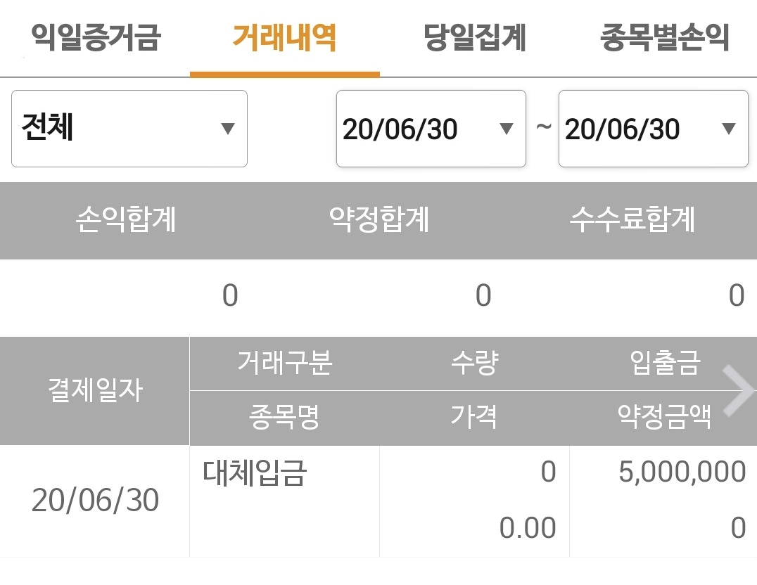 사진 1: 5백만 원을 뚝 잘라 선물계좌에 입금.