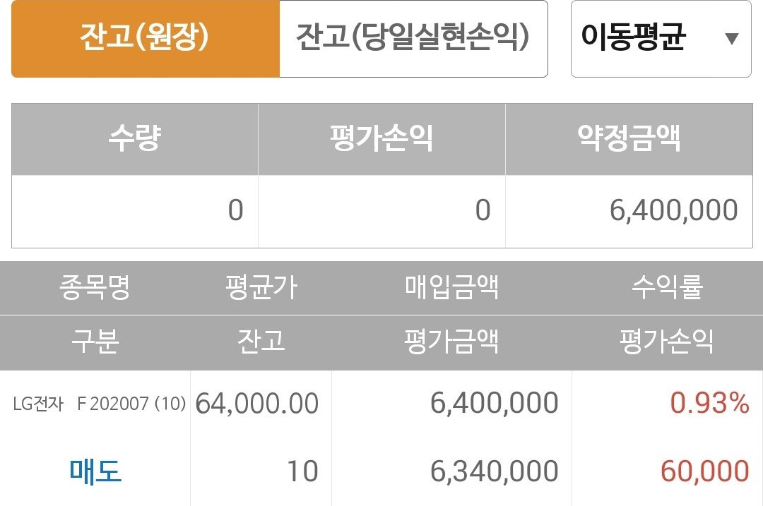 사진 2: 무엇을 할 것인가? 아, LG전자를 바로 전에 매도했는데 가격은 올라가고 있다. 5일선이 내려왔는데 요 거이 웬 횡재란 말인가. 하여 매도! 그때가 64,000원 할 때다. 종가가 63,400원에 끝나니 6,000원의 수익이다. 10주니까 60,000원의 수익.
