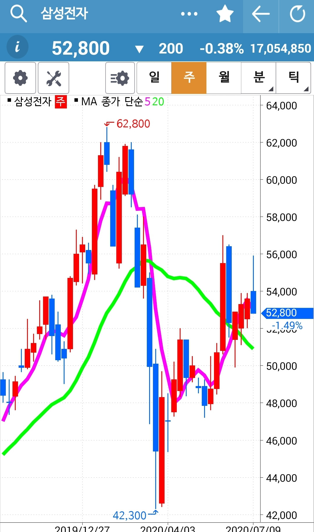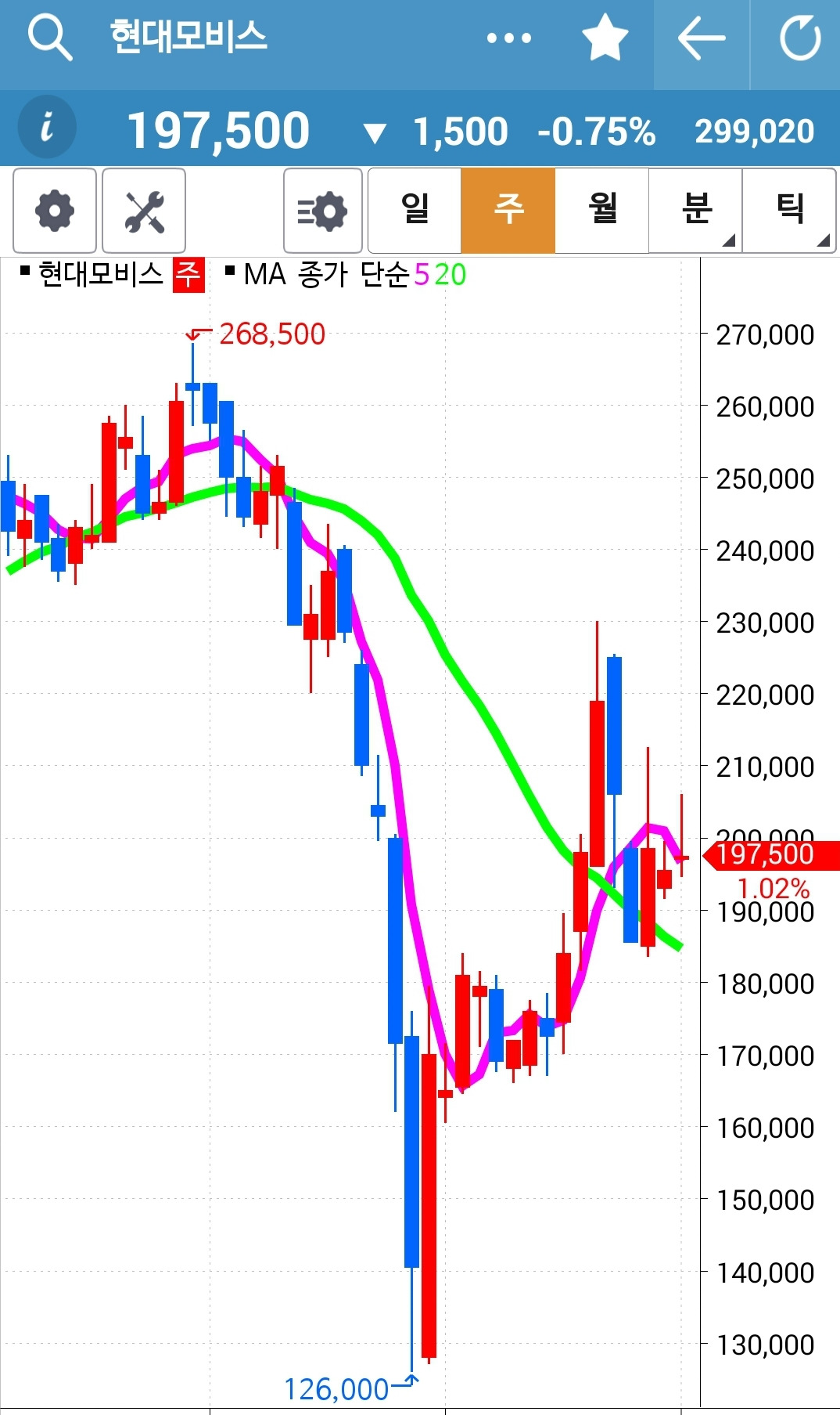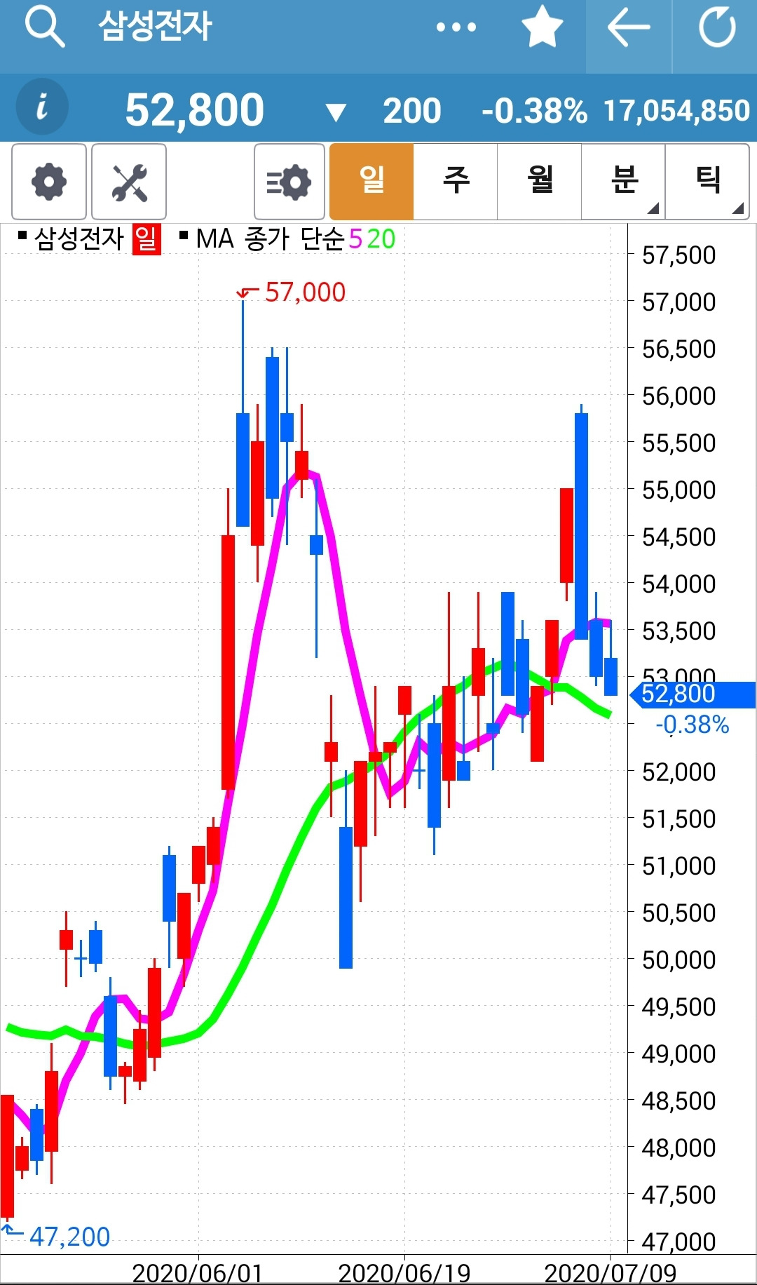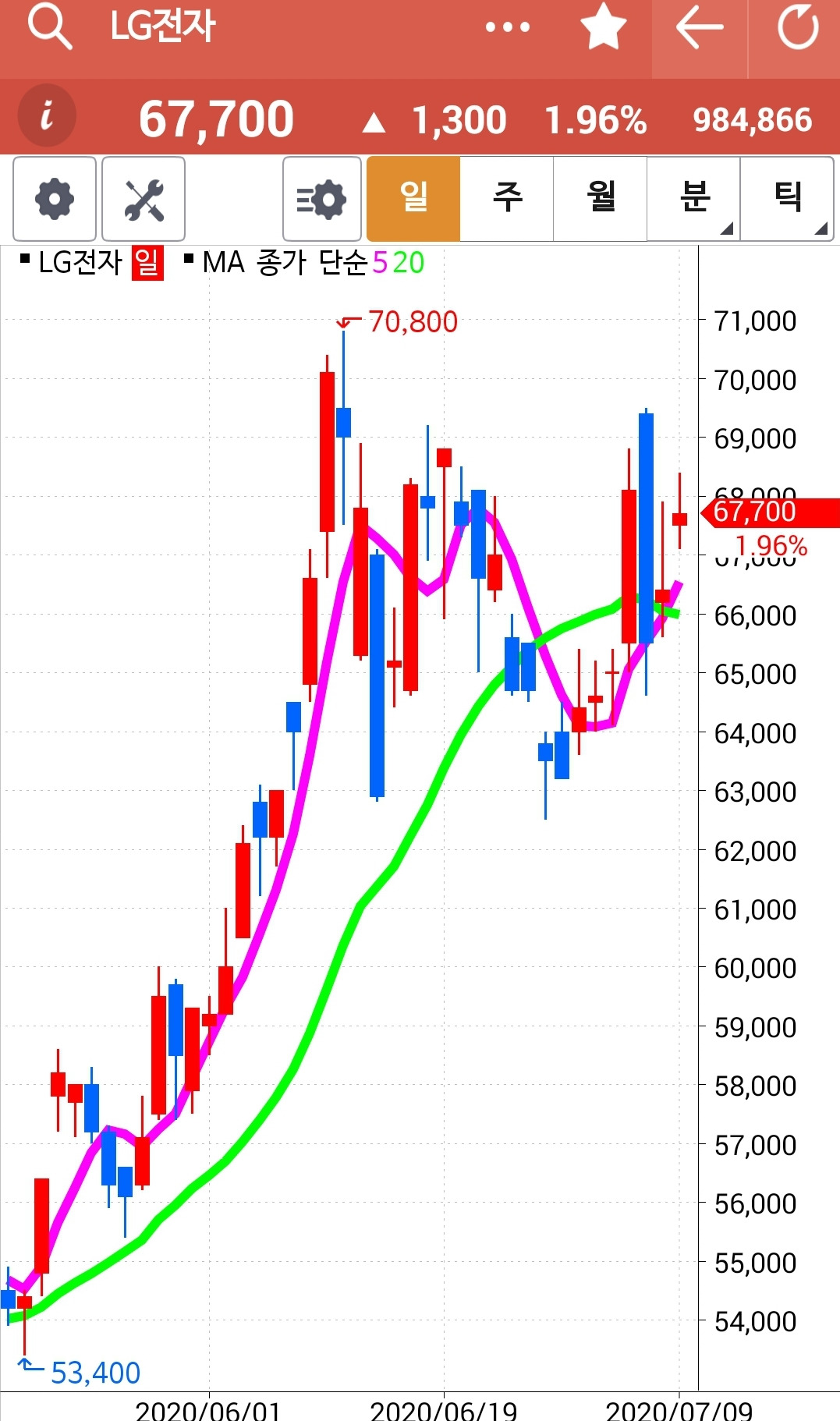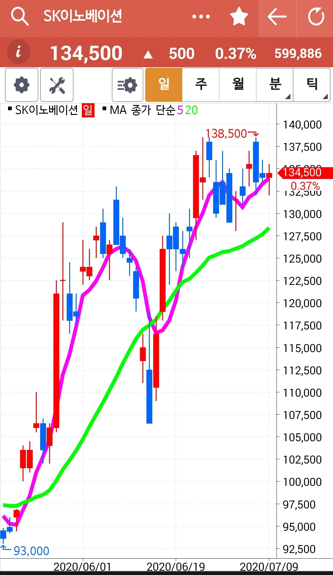 역시 5일선이 위니까 매수유지.