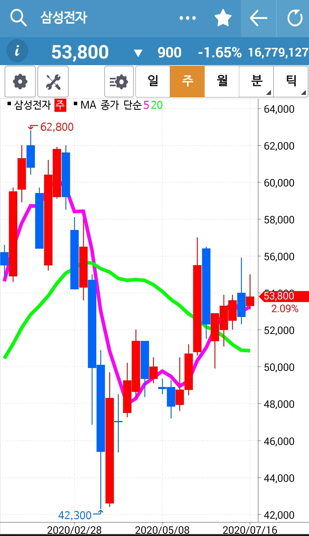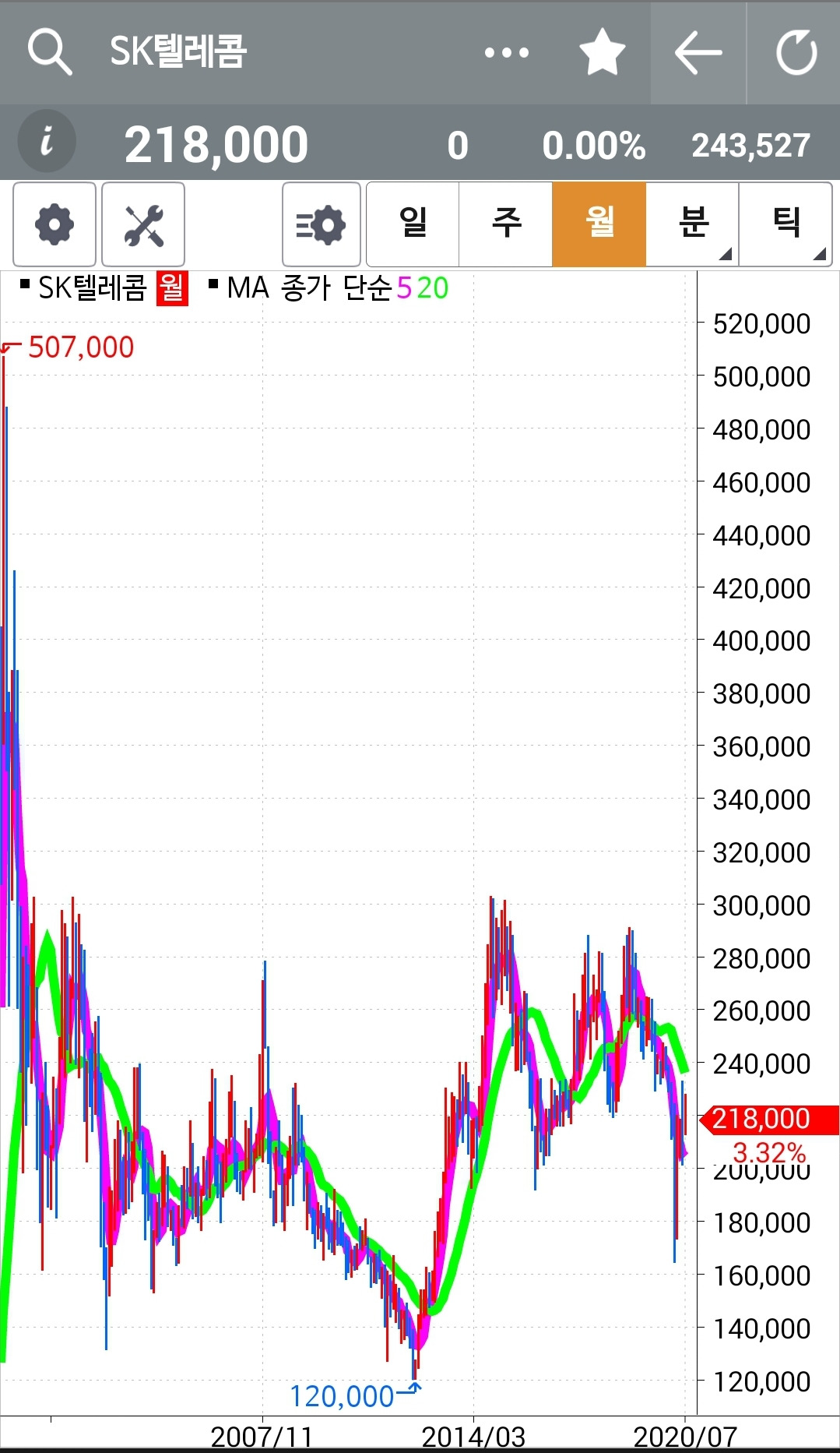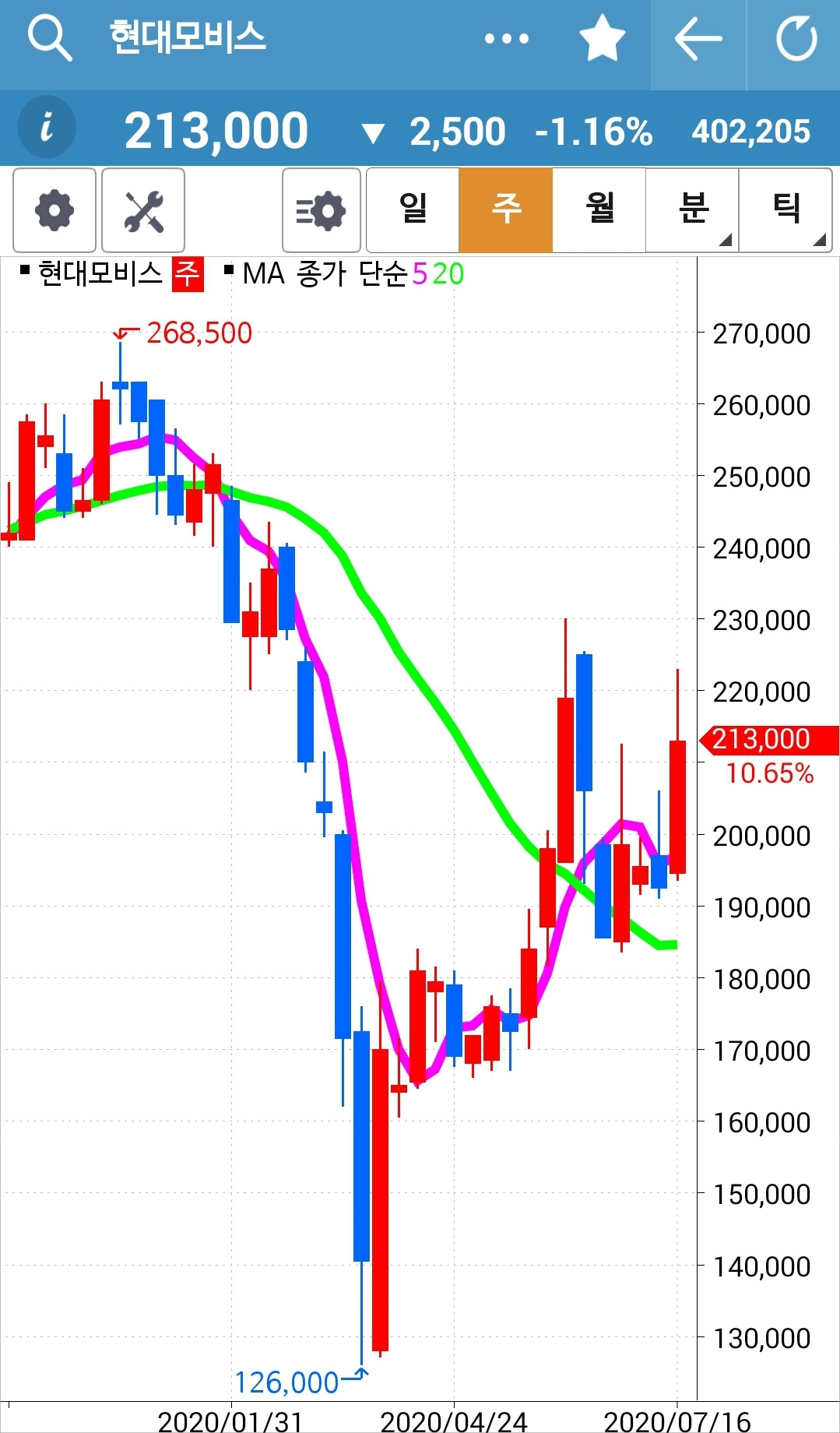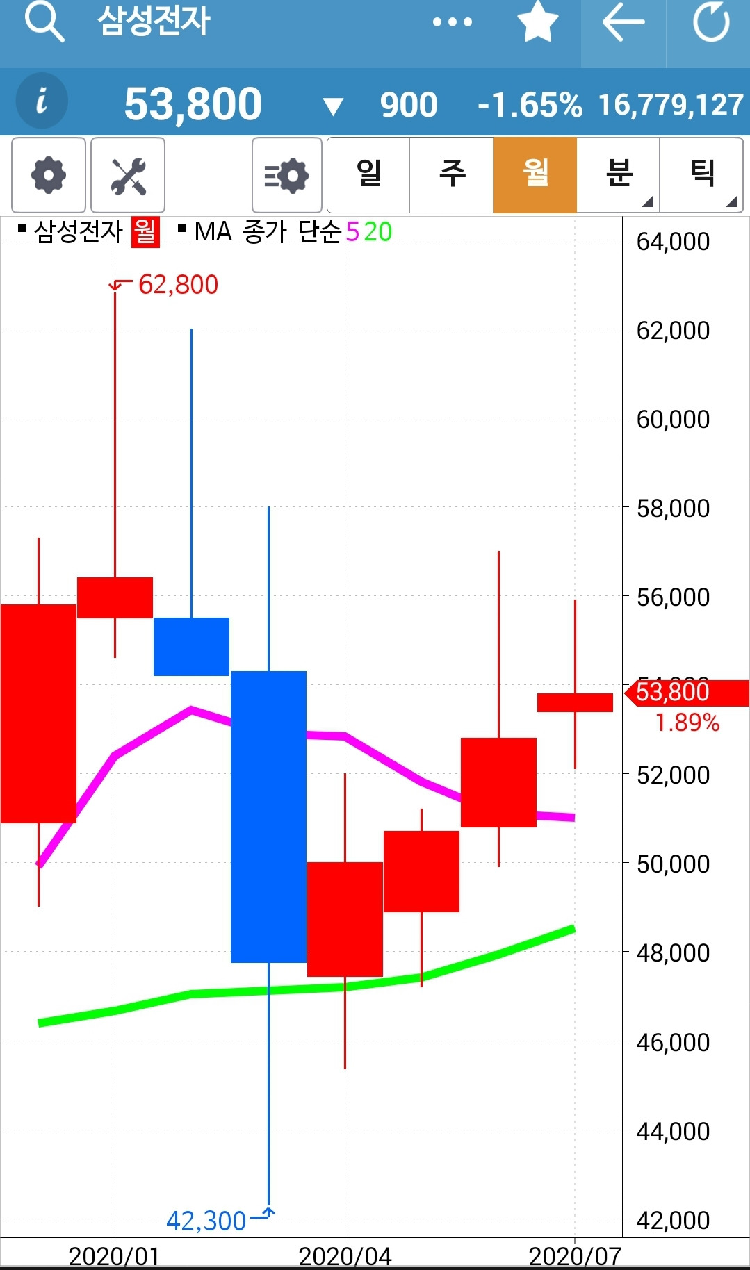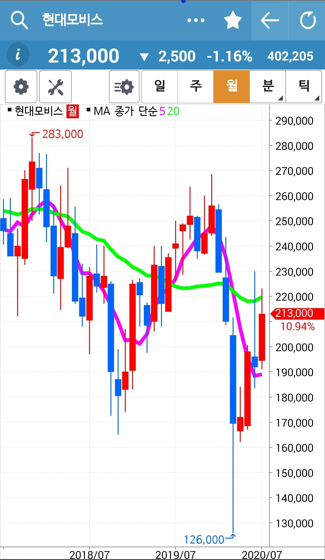 5일선이 위니까 역시 매수 유지. 주봉의 5 주선이 20 주선 위에 있으므로 살짝 안심. 그러나 5개월선은 방향은 틀듯말듯하나 여전히 20개월선 아래 있다. 그러나 그 장기적인 것들은 그냥 참고할 뿐 내가 매매하는 건 오로지 일봉. 5일선이 20일선 위면 매수할 뿐이다. 파이팅!!!
