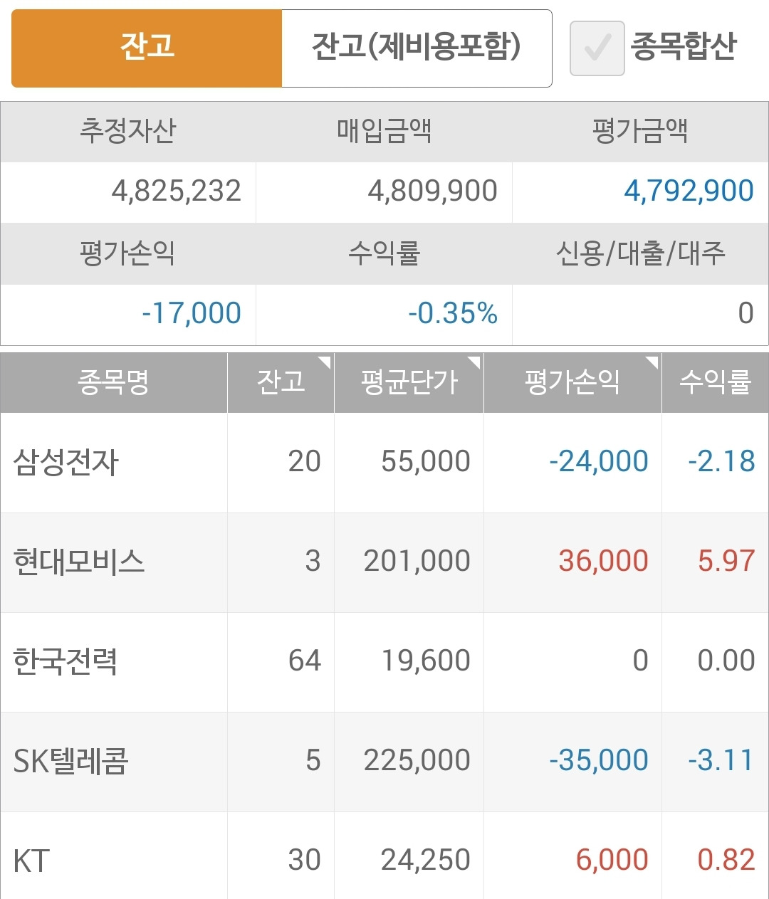 사진 2: 현물 주식. 18만 원의 손실 기록 중이다.