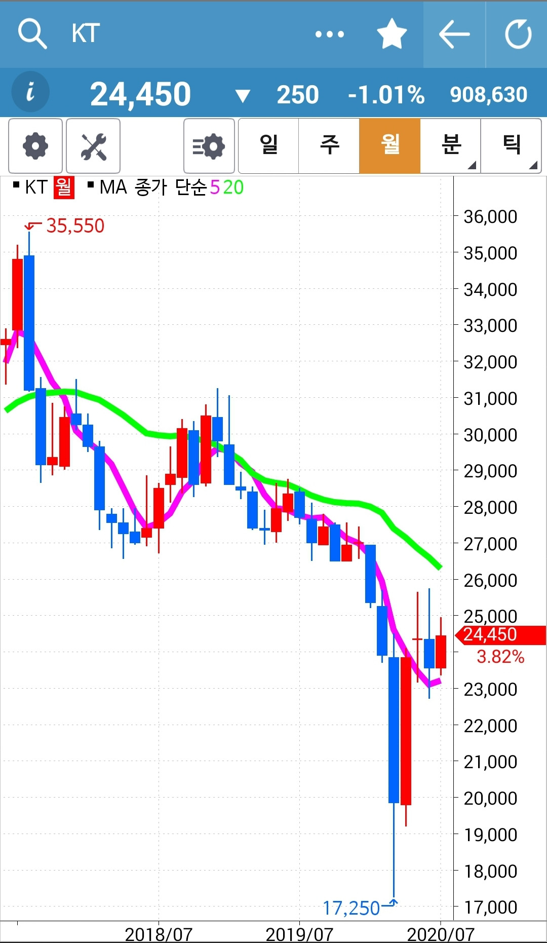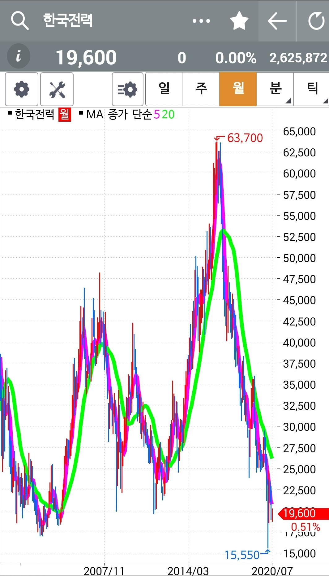사진 3: 월봉도 촘촘히 본다. 올라갔다 내려갔다 올라갔다 내려갔다. 이제 올라갈 일만? 하하 그건 알 수 없다. 내가 아는 건 5일선이 위면 매수한다는 것뿐. 위로 뚫었으니 매수!