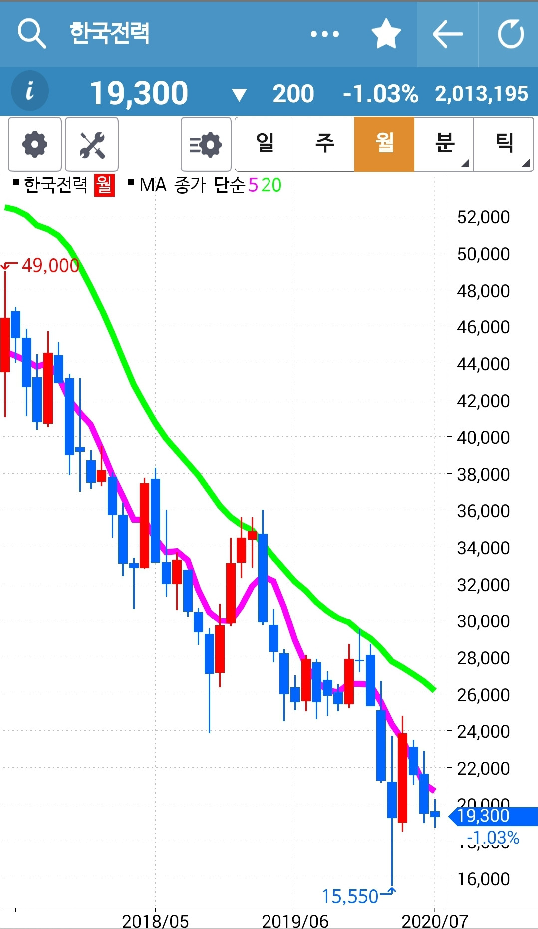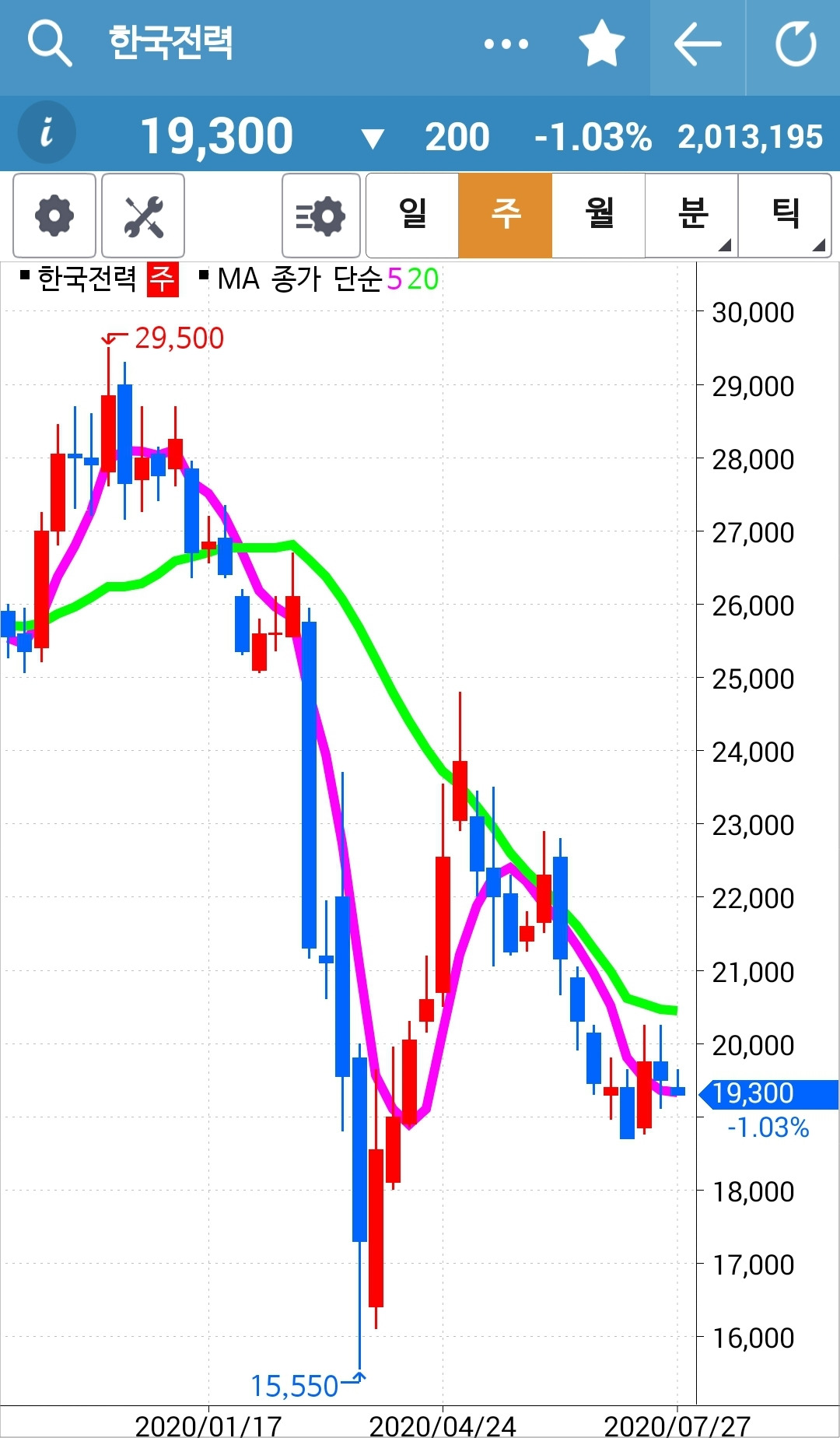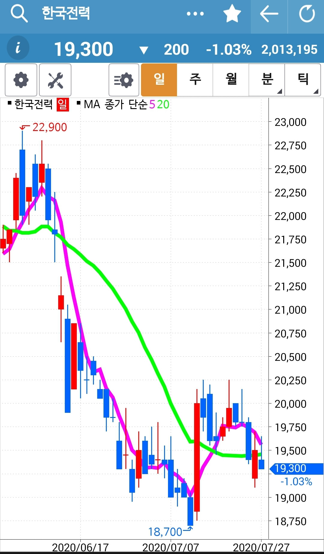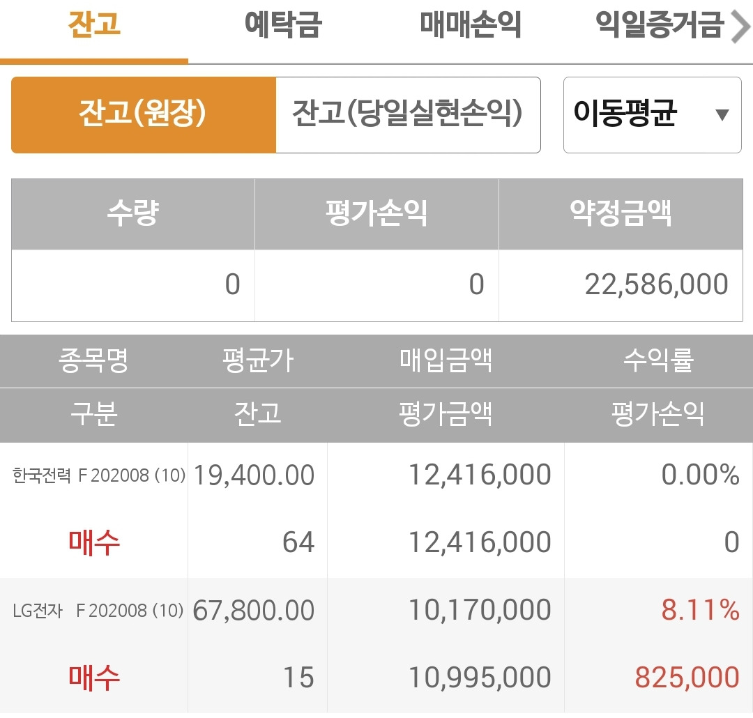 사진 2: 선물 주식. 한국전력을 잘못 선택한 것일까? 지켜보자. 차트를 보자. 파이팅!