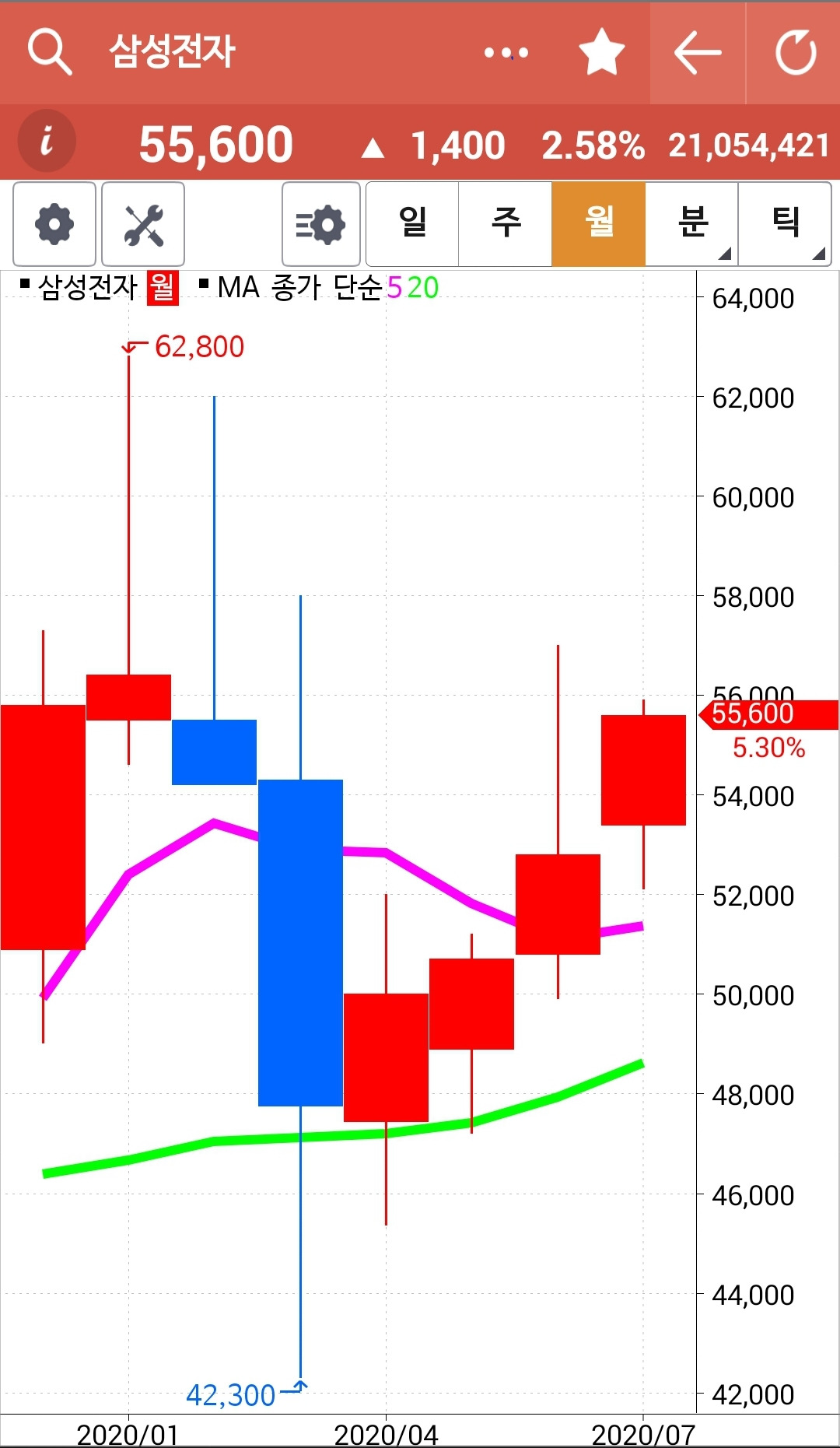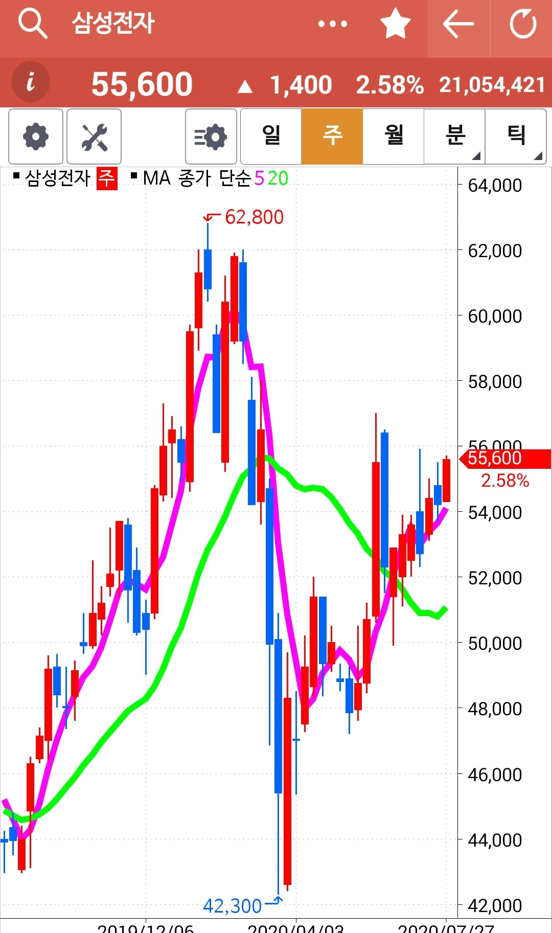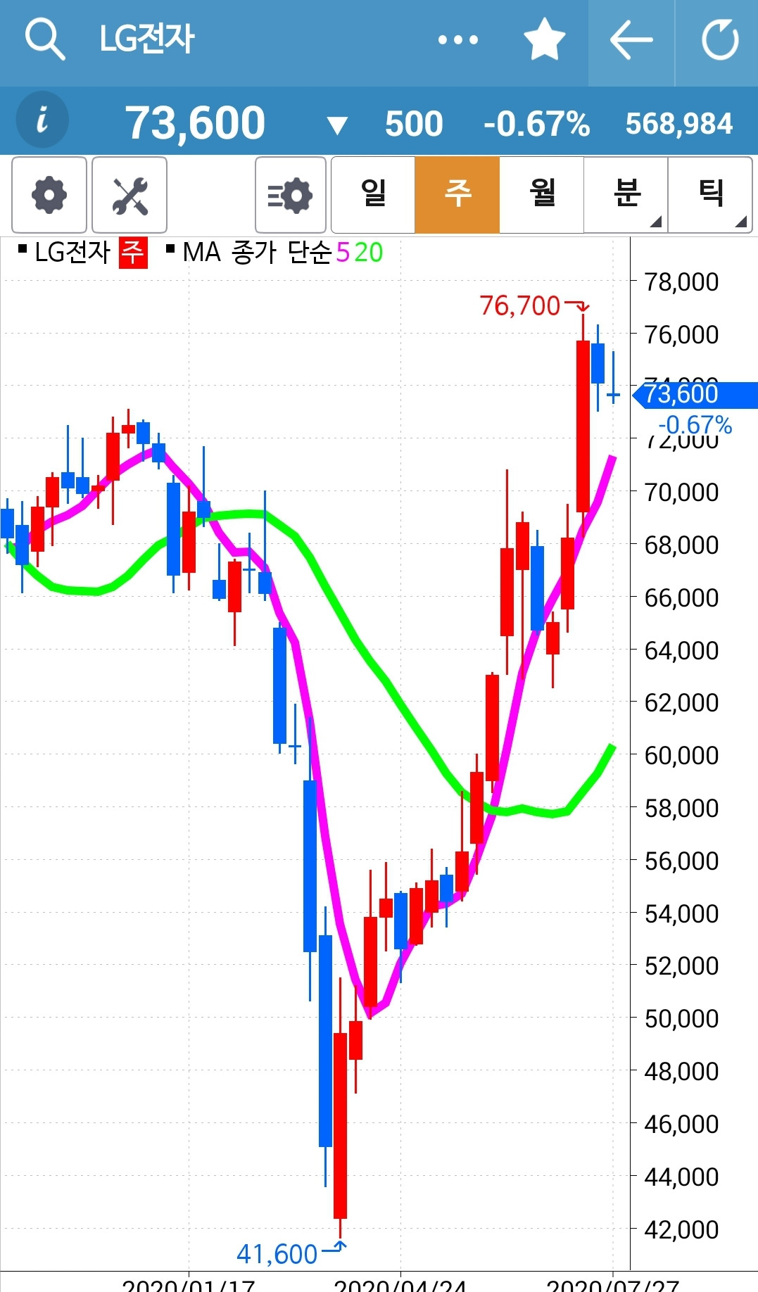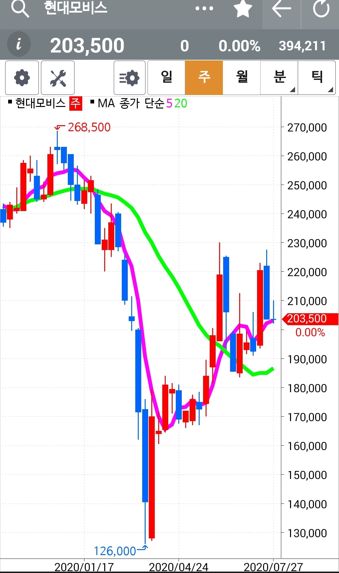 5일선이 20일선 위에 있지만 조정을 받아 다시 20일선 근처까지 왔다는 것이 바로 이 종목을 고른 이유인데 생각해보니 내려오는 그림을 선택한 꼴이 되었다. 그건 아닌가 보다. 빵 뚫고 올라가는 걸 사야지. 음. 다시 종목 선정 시 이렇게 20일선 근처라고 사는 일은 하지 말자. 20일선을 뚫고 올라가는 걸 사도록 하자. 내려가는 건 계속 내려가려 할 테니까. 어쨌든 내려가는 그림은 금물!!! 기다려서라도 높게 주고 사더라도 이 내려가던 방향이 위로 턴할 때 사는 걸로 하자꾸나. 파이팅!!!
