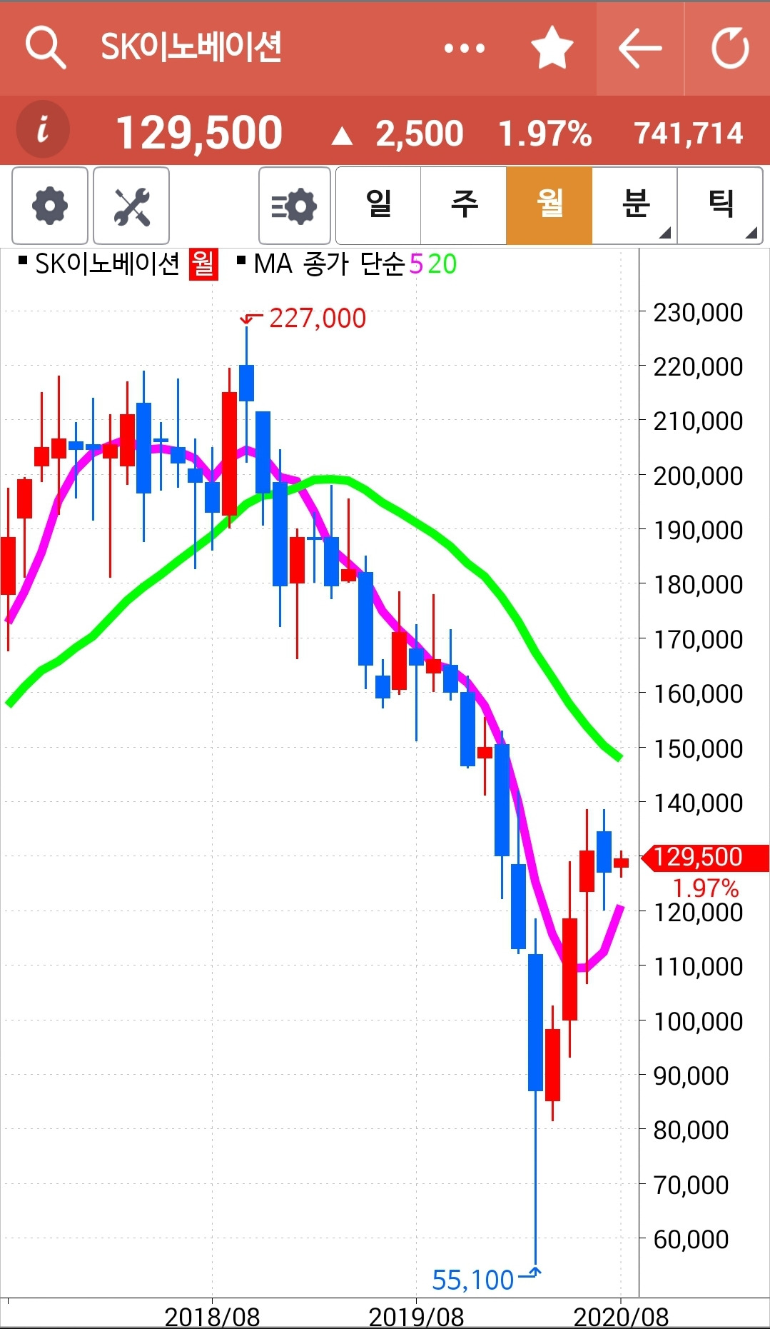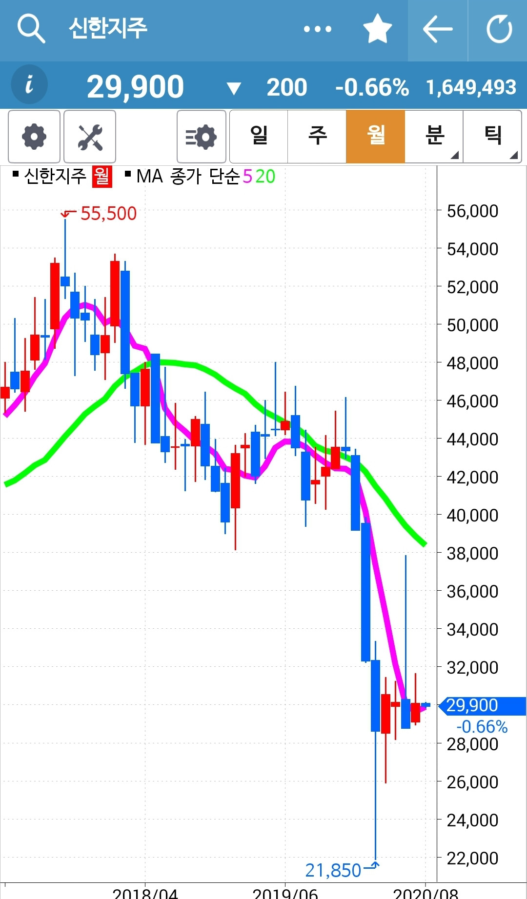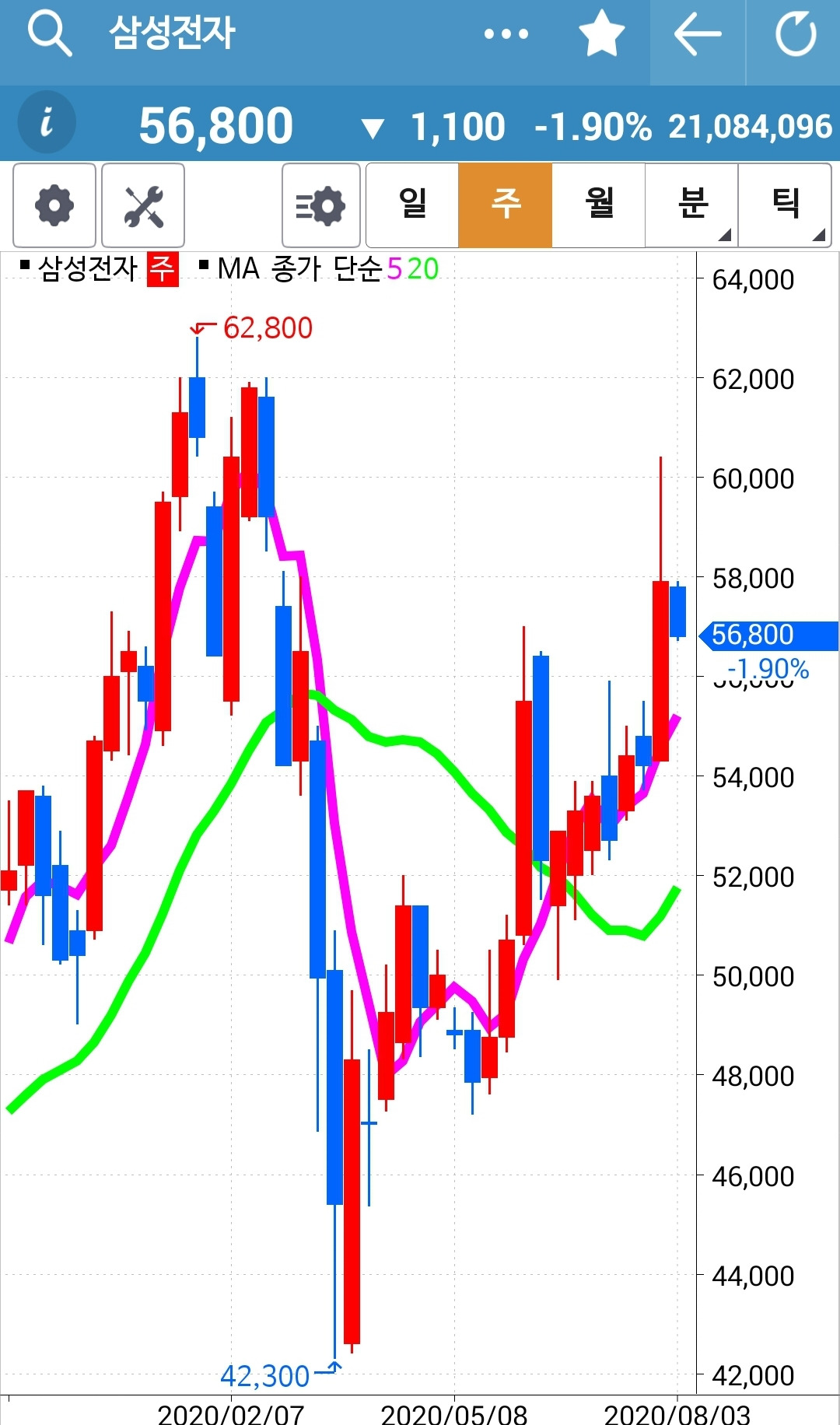캬~ 얼마나 멋진 모양인가. 쑥! 쑤욱! 하하 거의 네 봉을 까부수는 힘찬 용트림. 5일선이 20일선을 뚫고 내려갈까 말까 한 순간에 빵! 푸하하하 멋지다. 난 따라가리라. 파이팅!!! 내 너를 사랑하노라.