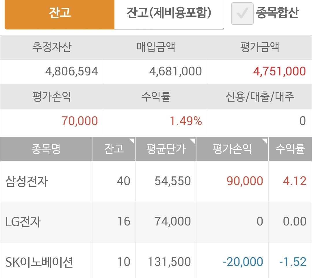사진 2: 현대 모비스 탈락하여 둘만 있던 곳에 LG전자를 사넣었다. 그래서 세 종목이 되었다.