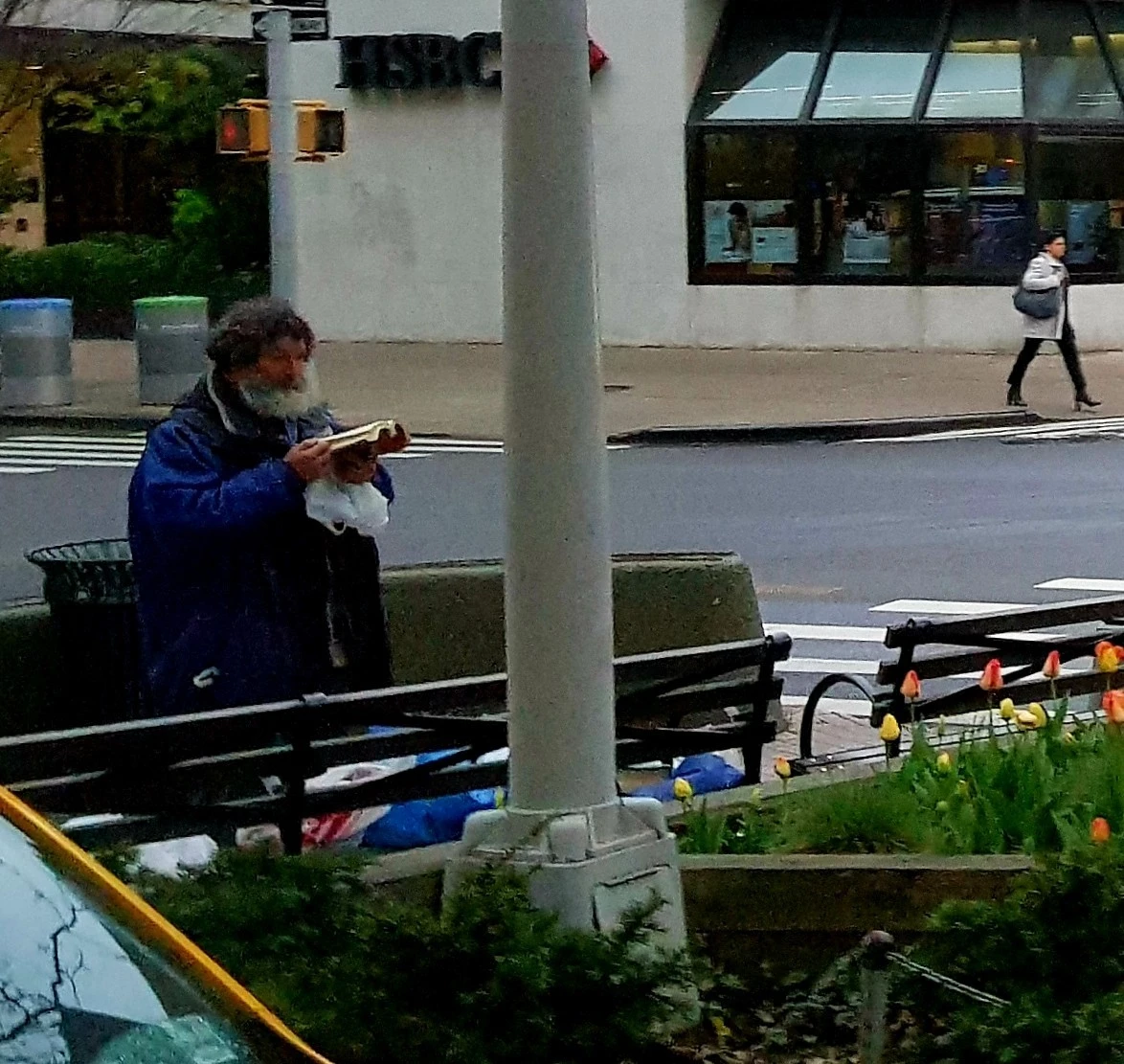 헉. 뉴욕 한복판에선 길거리의 고단해 보이는 노숙자 아저씨도 열심히 독서를 하고 있다. 삶이 고단할진대