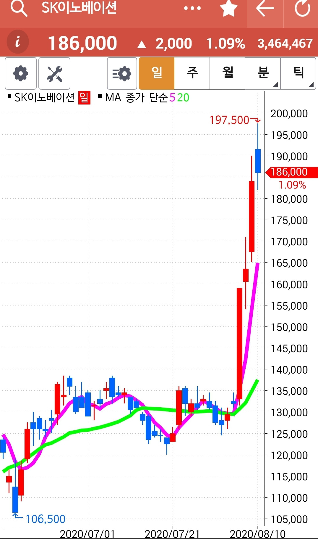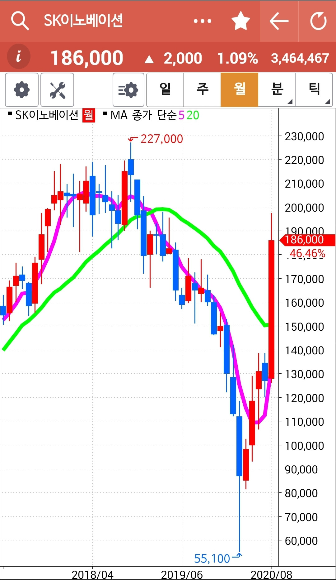 SK이노베이션. 그치. 좀 쉴 때도 되었지. 얼마나 힘차게 달려왔느냐. 쉬는 건 얼마든지 괜찮아. 5일선이 20일선을 뚫고 내려가지 않는 한 나는 너를 끝까지 보호하리라. 파이팅!!!
