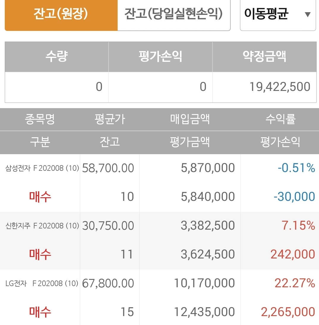 사진 2: 선물 주식. 신한지주가 손실을 뛰어넘어 단숨에 수익으로. 파이팅.