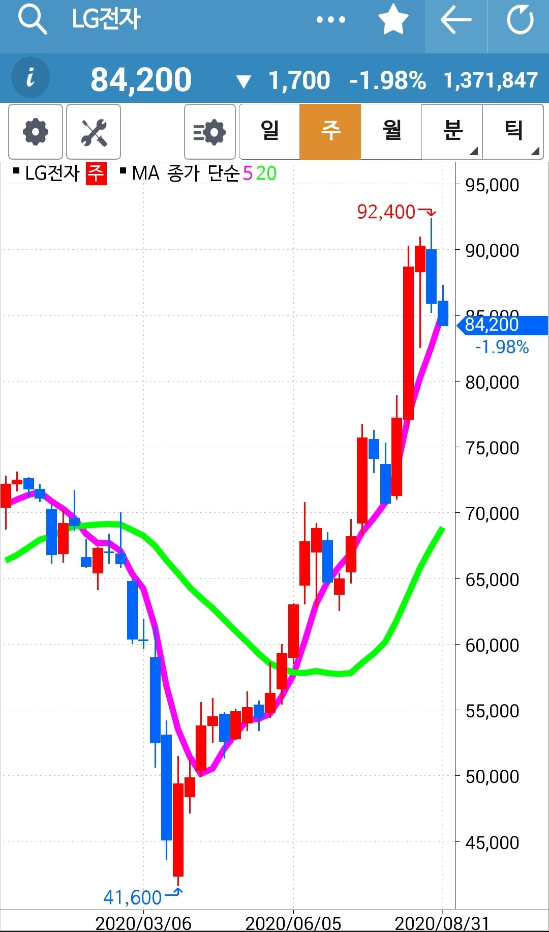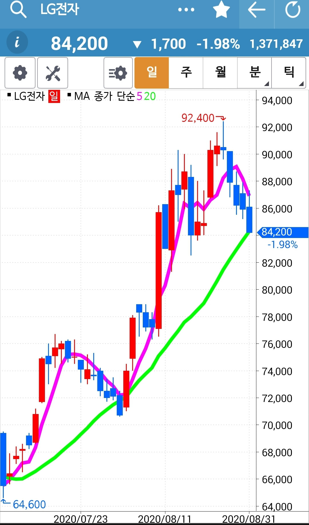 LG전자가 그야말로 꽁꽁 얼어붙었다. 손실이 눈덩이처럼 불어나고 있다. 그래도 아직은 5일선이 20일선 위에 있기 때문에 정리도 못한다. 난 아무것도 몰라요 5일선이 20일선 아래로 내려가면 매도할 뿐야요~ 개뿔! 흐. 사람 마음이 참으로 간사하다. 수익이 빵빵 날 때는 기분도 좋고 나도 쫌 괜찮은 여자 같고 그런데 이렇게 손실이 파팍 늘어나면 기가 팍 죽는다는 것이다. 그냥 마구 쪼그라든다. 쪼글쪼글. 그러면서 매사에 짜증이 나고 기운도 없고 의욕도 없고 모든 게 귀찮고 모든 게 부질없어 보이고. 하. 끝도 없다. 한 번 추락하기 시작하면. 그렇다고 그대로 그렇게 맘이 썩어 문드러지게 내버려 둘 것이냐? 그럴 수는 없지. 그래 변한 건 없어. 난 원칙을 지키고 있는 거야. 오늘내일 5일선은 20일선을 뚫고 내려오겠지. 그러면 그때 탈락시키면 되는 거야. 기죽을 거 하나 없다고. 변한 건 없는데 그렇게 마음을 온통 우울하게 만들 필요 없어. 어차피 난 5일선이 20일선 위에 있는 한 아무 행동 안 할 거잖아. 그렇다면 환경은 똑같은데 왜 부질없이 마음을 이렇게 못 살 게 굴지? 지옥이 따로 있나? 스스로 딸딸 볶으면 그게 바로 지옥이지. 그래! 까짓 손실 나라고 해! 그래도 난 나의 원칙을 지킬 거니까. 흥! 그게 뭐라고 이렇게 축 쳐진단 말이냐. 난 잘못한 게 아무것도 없어. 잘못이라면 LG전자가 하고 있는 거지. 푸하하하. 맞아. 이쯤에서 올라가 주어야지. 왜 안 올라가는 거야. 흥!!! 그래. 내 탓 말고 네 탓을 하자. 그렇게 해서 내가 일어설 수 있다면 그것도 좋아. 내 탓이 아니야. LG전자 탓이야. 빨리 올라가지 못해!!! 소리를 빽 질러버릴까. 푸하하하 으하하하 나는 곰이다!!! 옛날에 그런 드라마가 있었다. 시작할 때 뚱뚱한 남자가 나와서 으하하하하하 나는 곰이다~ 소리친다. 마치 운명아 비켜라 내가 나간다 처럼 이 세상을 향하여 빵!!! 크게 외쳐대는 것이다. 그래. 나는 곰이다!!! 나도 그를 따라서 세상을 향해 호령해보자. 어차피 변하지 않는 주식 환경이라면 난!!! 나의 마음을 바꾸리라!!! 지옥에서 천당으로 불행에서 행복으로!!! 아, 그래도 손실이 크니 기가 죽는 건 사실. 노노노!!! 힘을 내자!! 파이팅!!!