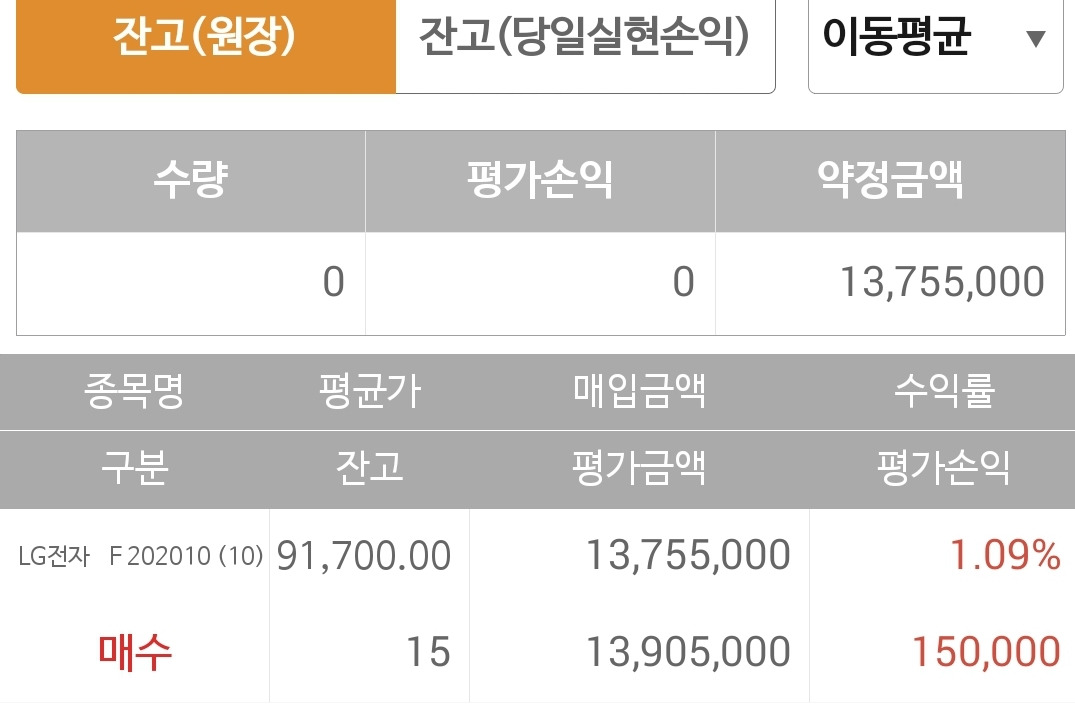 사진 2. 선물주식. LG전자로 빵빵하게 사두었다. 나의 손실을 다시 메꾸어다오~