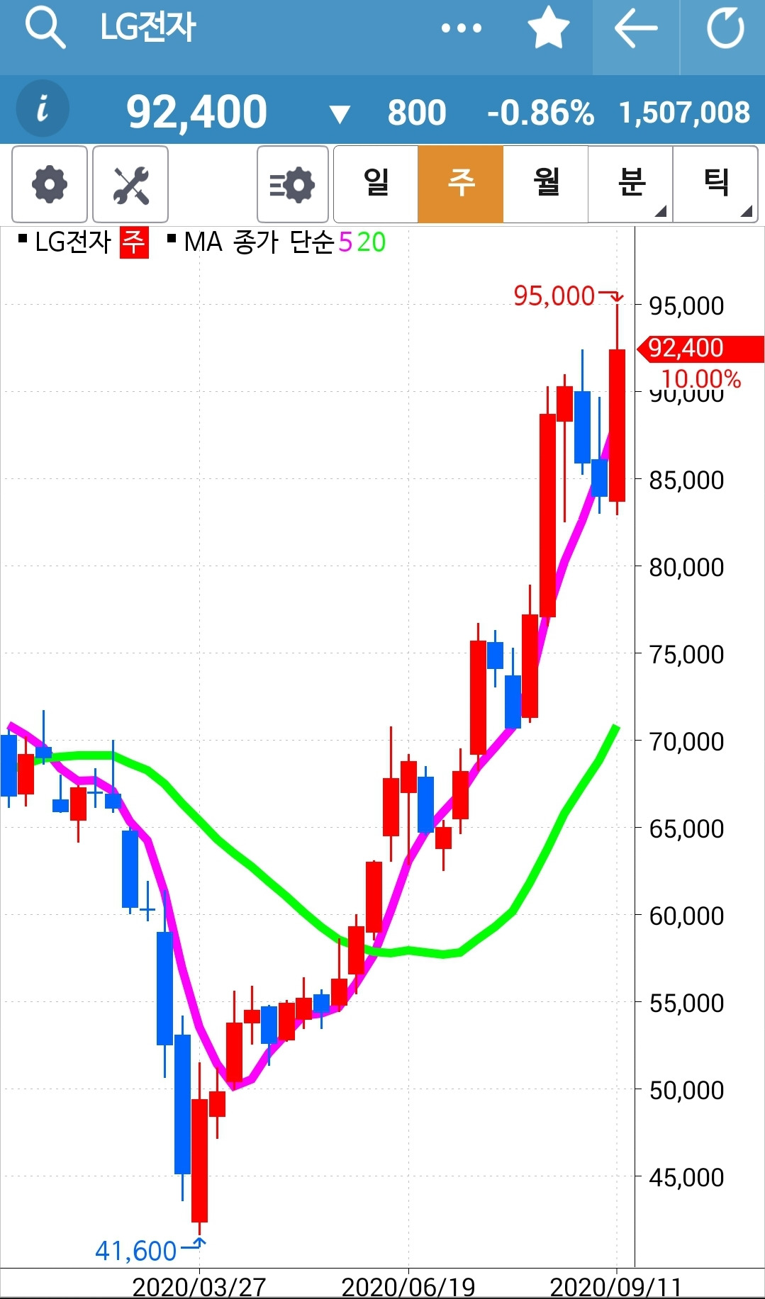 하하 난 LG전자 사랑에 폭 빠진 것일까. 다른 종목은 잘 눈에 들어오지 않는다. 매수시점만 노리다 나의 원칙에 맞게 5일선이 20일선을 돌파하는 날 난 정신없이 사들였고 그리고 그렇게 나의 잔고에 들어가 있다. 이제 나의 사랑을 알았다면 그대로 빵빵 올라주어야 할 텐데 이 마음을 알려나. 하하 어쨌든 나의 원칙을 충족시키기에 난 그를 다시 품었다. 어떤 그림을 그려갈지 많이 궁금하다.