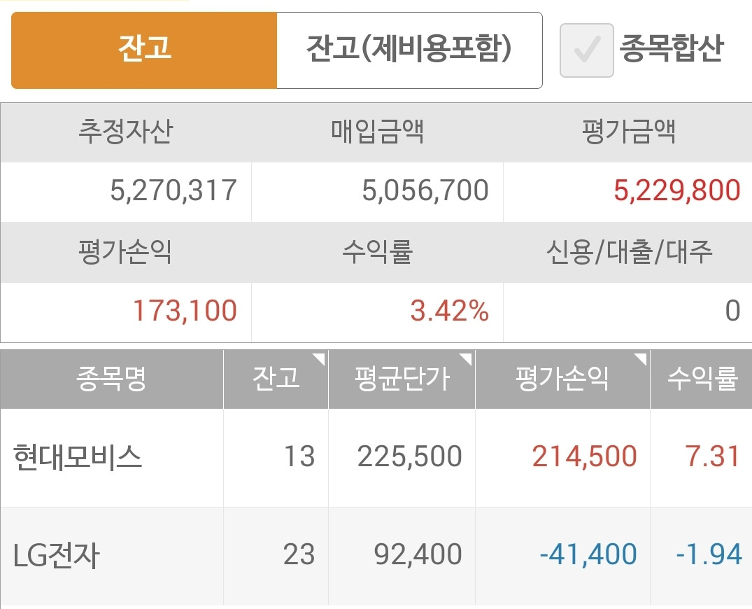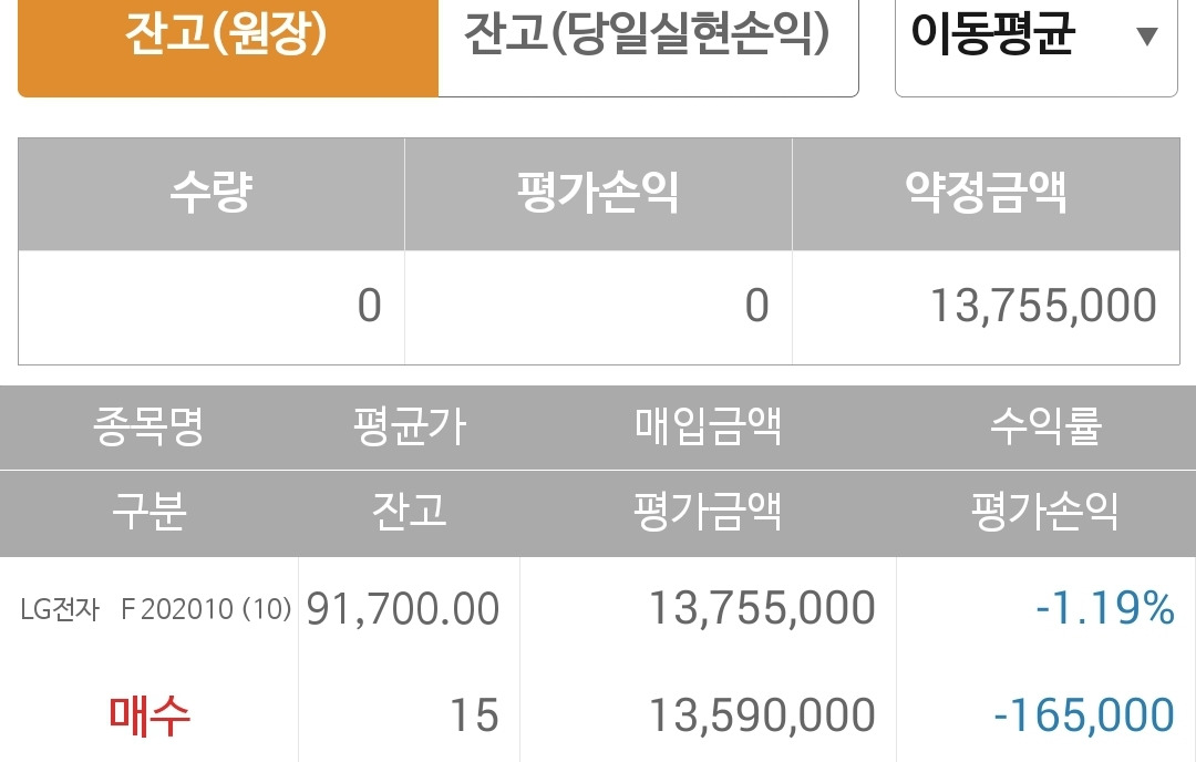 사진 2. 선물 주식. LG전자에만 몽땅 투자. 그리고 손실 중