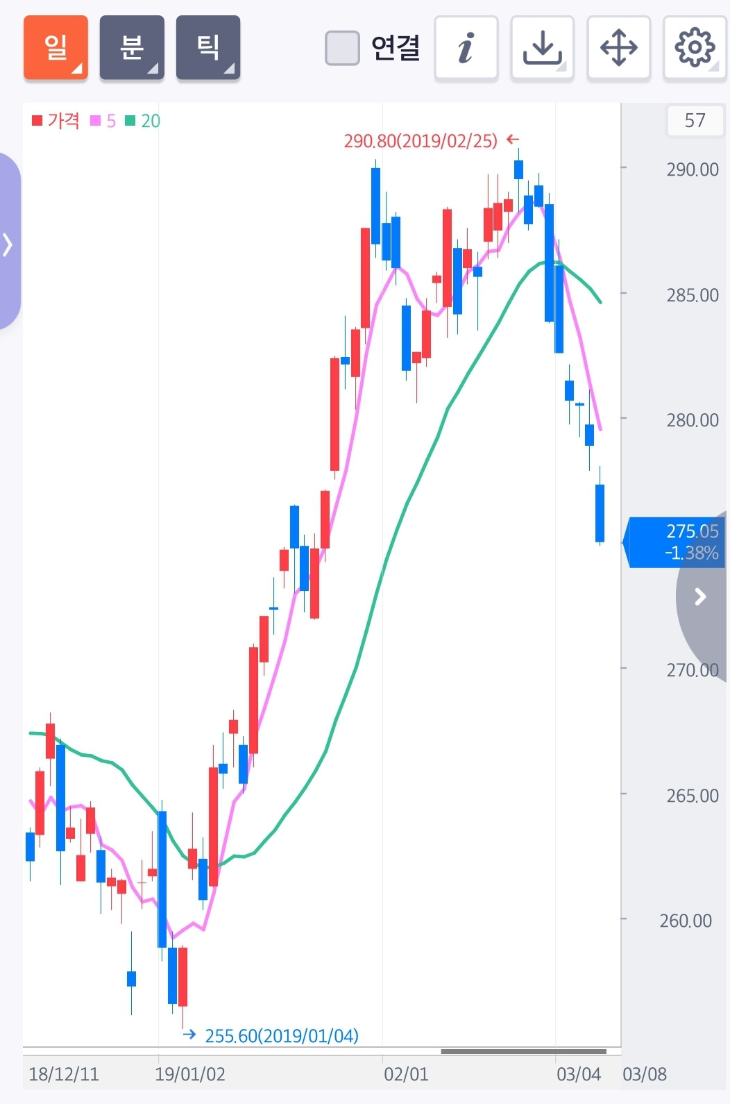 와~ 오늘 하룻 사이에 무려 3.85 포인트가 내려갔다. 세상에. 그러니까 나의 감이란 얼마나 엉터리인가. 그 어떤 원칙이 되었건 원칙을 지켜내는 것이 중요하다. 나의 감 말고 말이다. 과연 오늘 하루 나의 수익은 어떻게 될까? 도무지 선물 1 계약을 갖고 말이다.