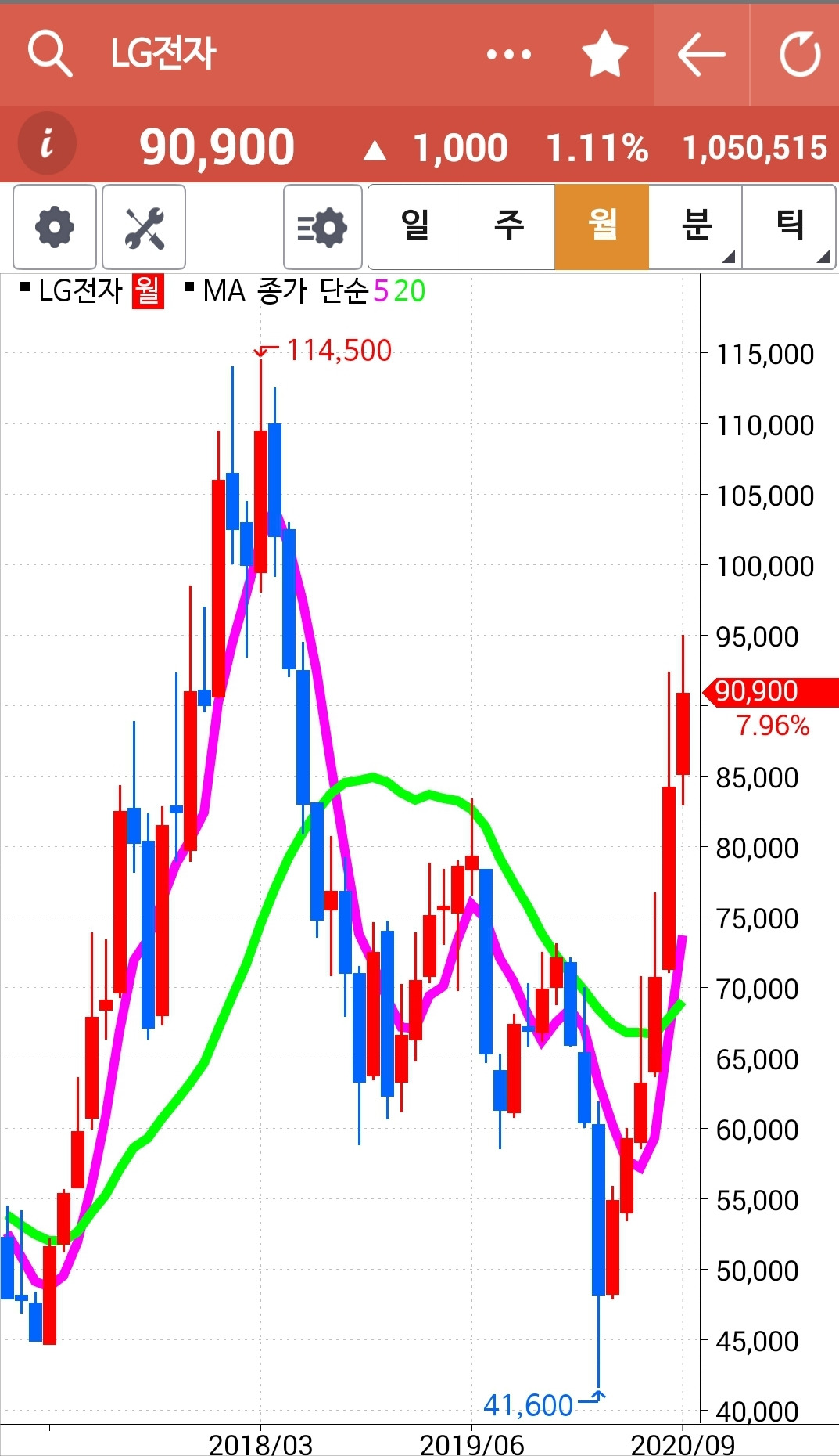 주봉 월봉 모두 좋다. 잘 올라가고 있다. 쭉쭉 위로 가거라~ 히히