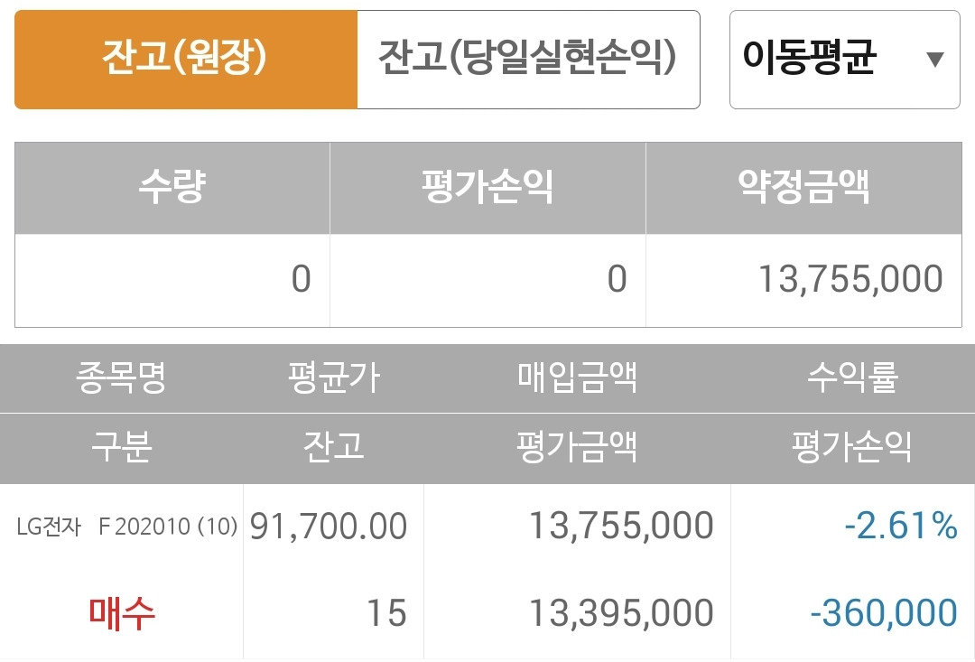 사진 2. 선물 주식. LG전자로 가득 채워진 모습.