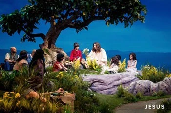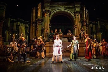 그뿐인가? 돼지 3,000 마리가 바닷물로 뛰어드는 장면에선 정말 살아있는 돼지들이 무대 위에서 실제로 뛰어내리고, 베드로가 그물이 끊어지도록 많은 고기를 낚는 장면에선 무대가 온통 넘실대는 바다로 바뀌며 생동감을 준다. 무대 위 마구간에서는 잘생긴 거대한 진짜 살아있는 말들이 객석으로 뛰어 나가고 소, 양, 돼지 같은 실제 동물들이 무대에서 객석으로 마구 뛰어 나간다. 하하.