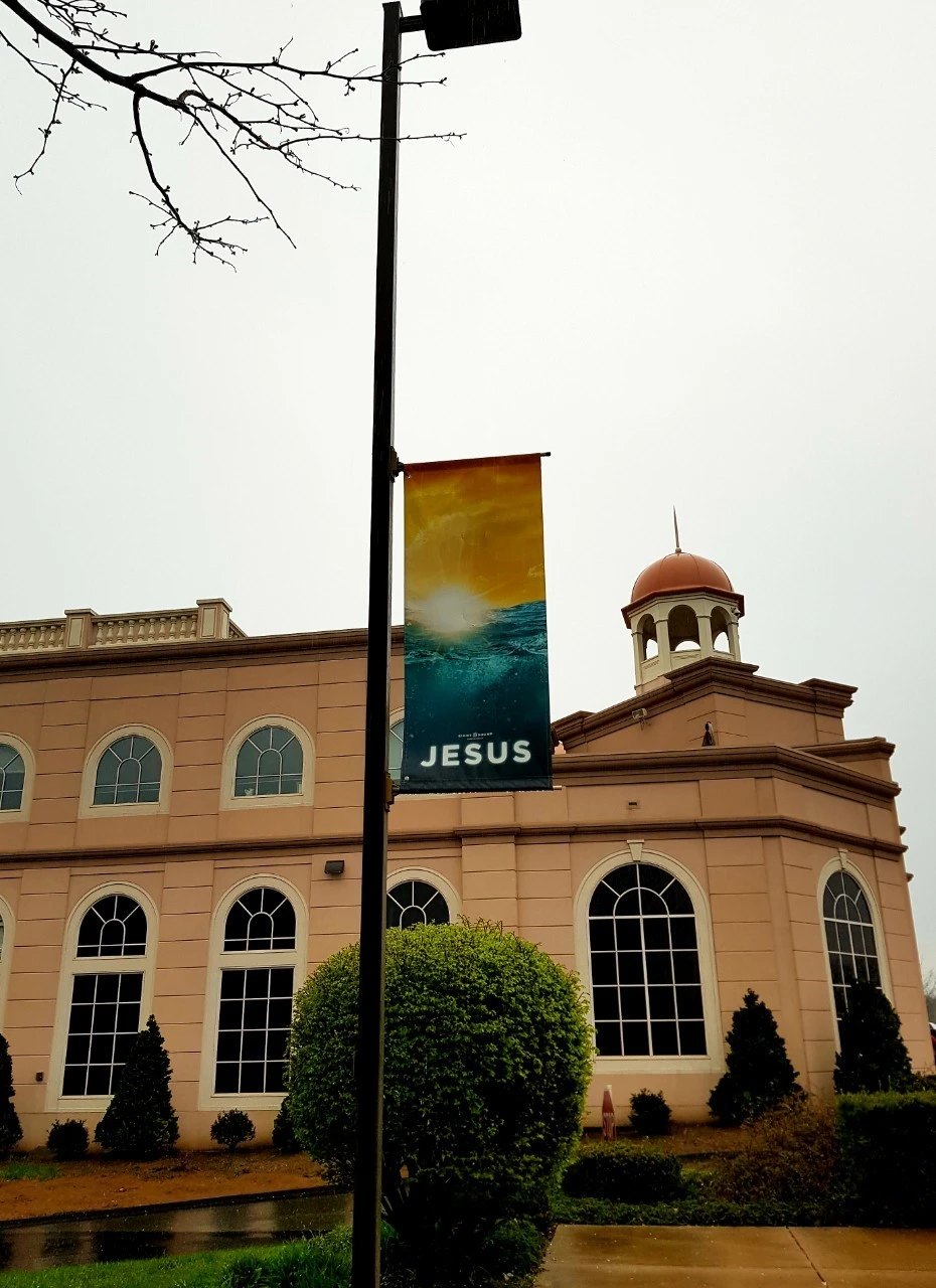 JESUS 플래카드가 펄럭인다. 아미쉬 마을에서부터 후드득 거리던 빗방울은 이제 거의 폭우 수준이다. 쏴아 쏴아~ 엄청나게 퍼붓는다. Jesus 아. 다 왔구나. 한국에서부터 이 것만은 꼭 봐야 한다고 친구들이 벼르고 벼르던 사이트 & 사운드 극장 Sight & Sound Theatres 성극 Jesus 다.
