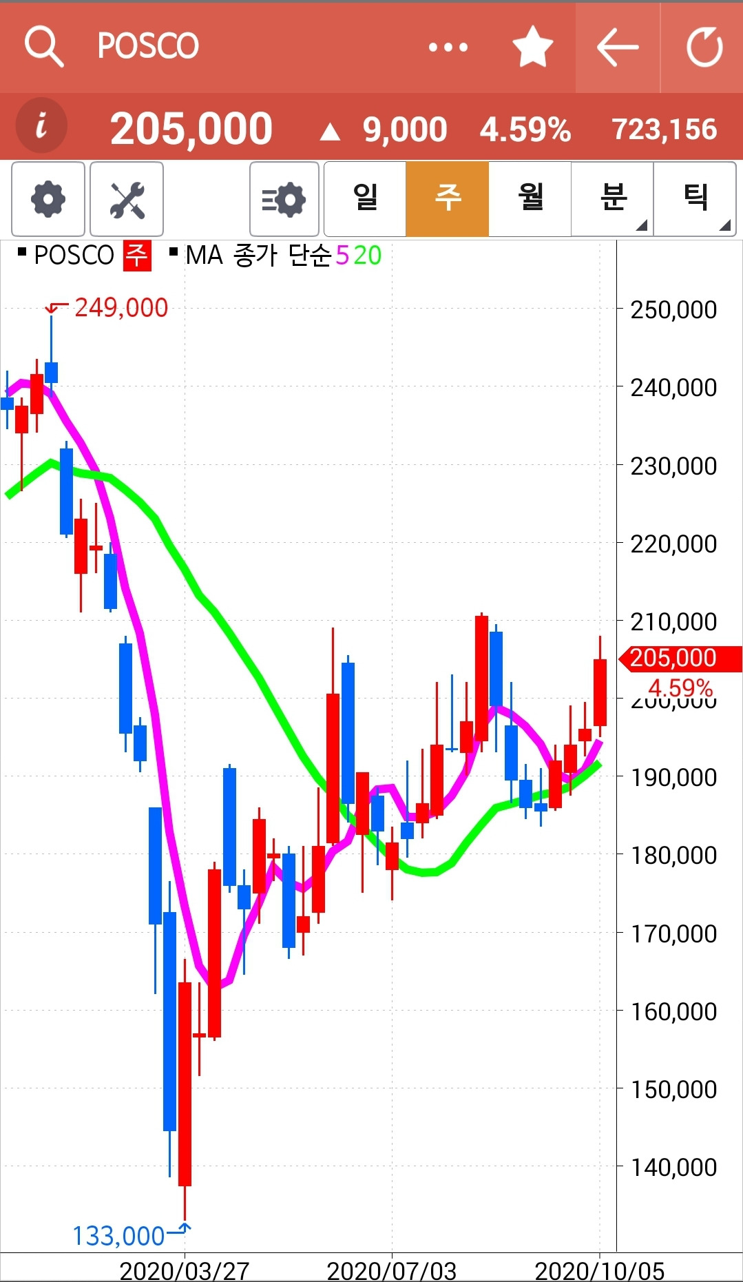 POSCO. 나 스스로 차트 보고 골라냈는데 이렇게 빵! 위로 올라가 줄 때. 아, 그 기쁨이라니. 이 맛에 주식 매매를 하는 것 아닐까.