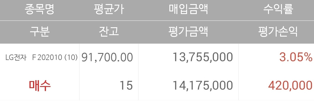 사진 2. 선물 주식. 오호호홋. LG전자로 몽땅 채워놓길 정말 잘했어~ 푸하하하. 간사한 나의 맘. 떨어질 땐 바보 어쩌자고 위험하게 다 사넣느냐 하더니 조금 오르니 몽땅 사넣길 참 잘했어하며 기뻐하는 요 간사한 맘이여~