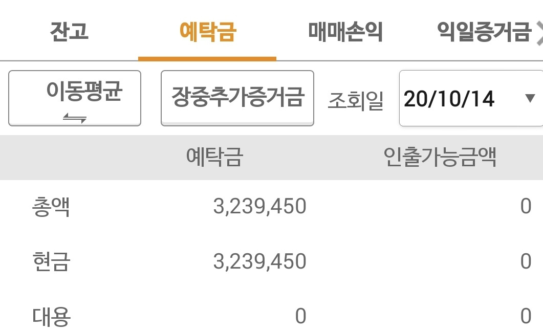사진 3. 선물주식예탁금. 여전히 170여만 원의 손실 중이다. 그래도 내가 할 수 있는 건 없다. 난 나의 원칙을 지켜내는 훈련 중이니까. 난 아무것도 몰라요 5일선이 20일선 뚫고 내려가야만 매도할 수 있어요~
