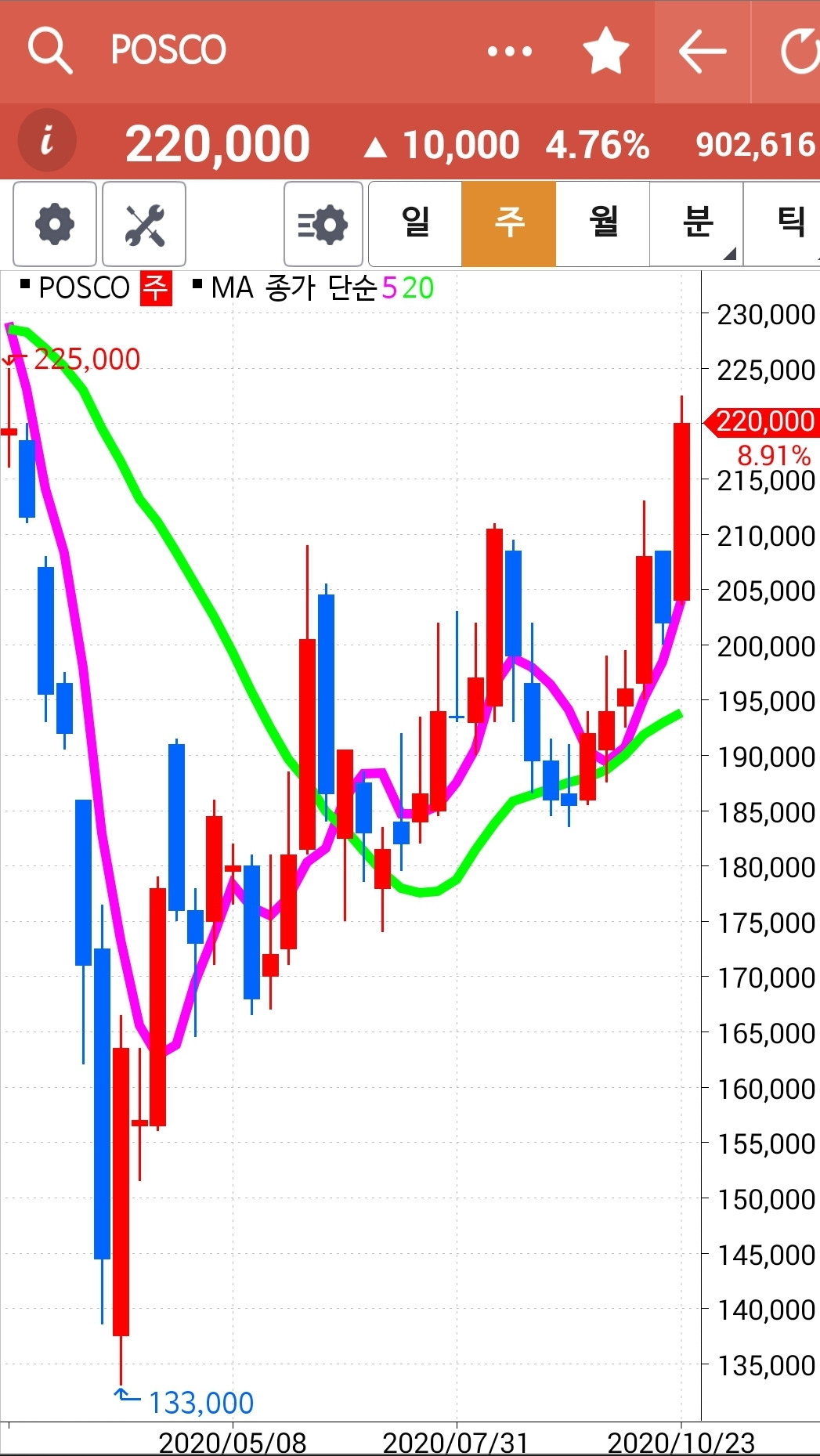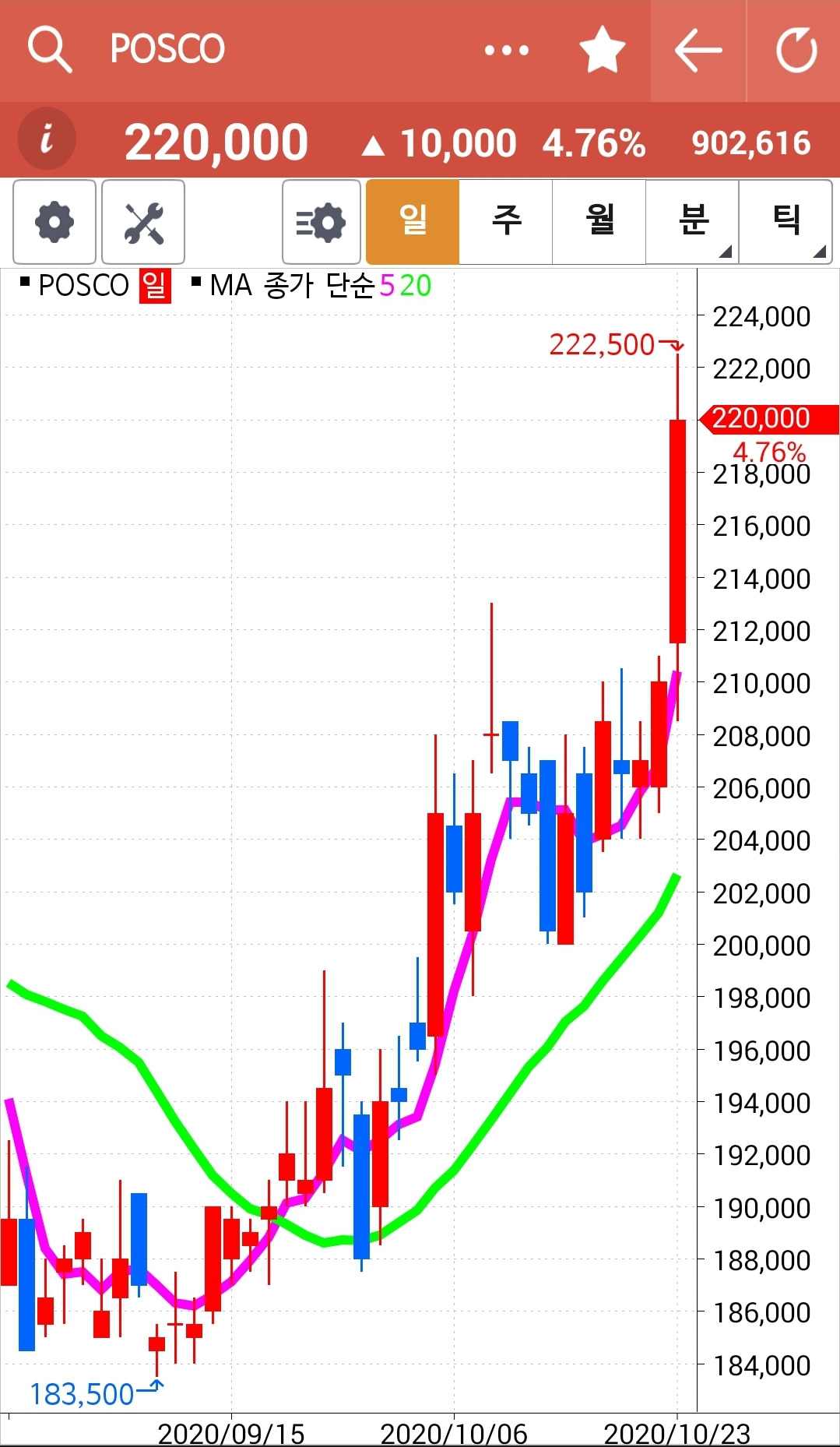 오홋. 포스코. 캬~ 이런 장대 양봉. 하하 아 좋아라. 그렇지. 이렇게 올라가야지. 파이팅!!!