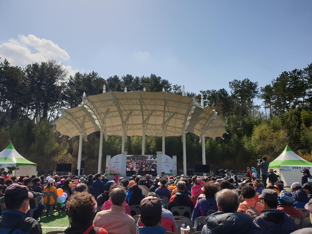 그 막연히 기다리는 시간. 일찍 와준 고마운 사람들에게 차라리 안내를 해주면 안 되었을까? 식은 10시에나 시작되니 그 이전에 먼저 수변공원을 돌고 오세요라든가. 무언가 말이 있어야 하지 않았을까? 나중에 헐레벌떡 온 사람은 기다림의 견디기 힘든 시간이 없어 괜찮을 수 있다. 그러나 일찍 온 사람은 도대체 무어란 말인가. 그러면서도 끝까지 행운권이라는 미끼에 그 땡볕 아래 식후행사마저 모두 보려 한 내가 바보 같다.