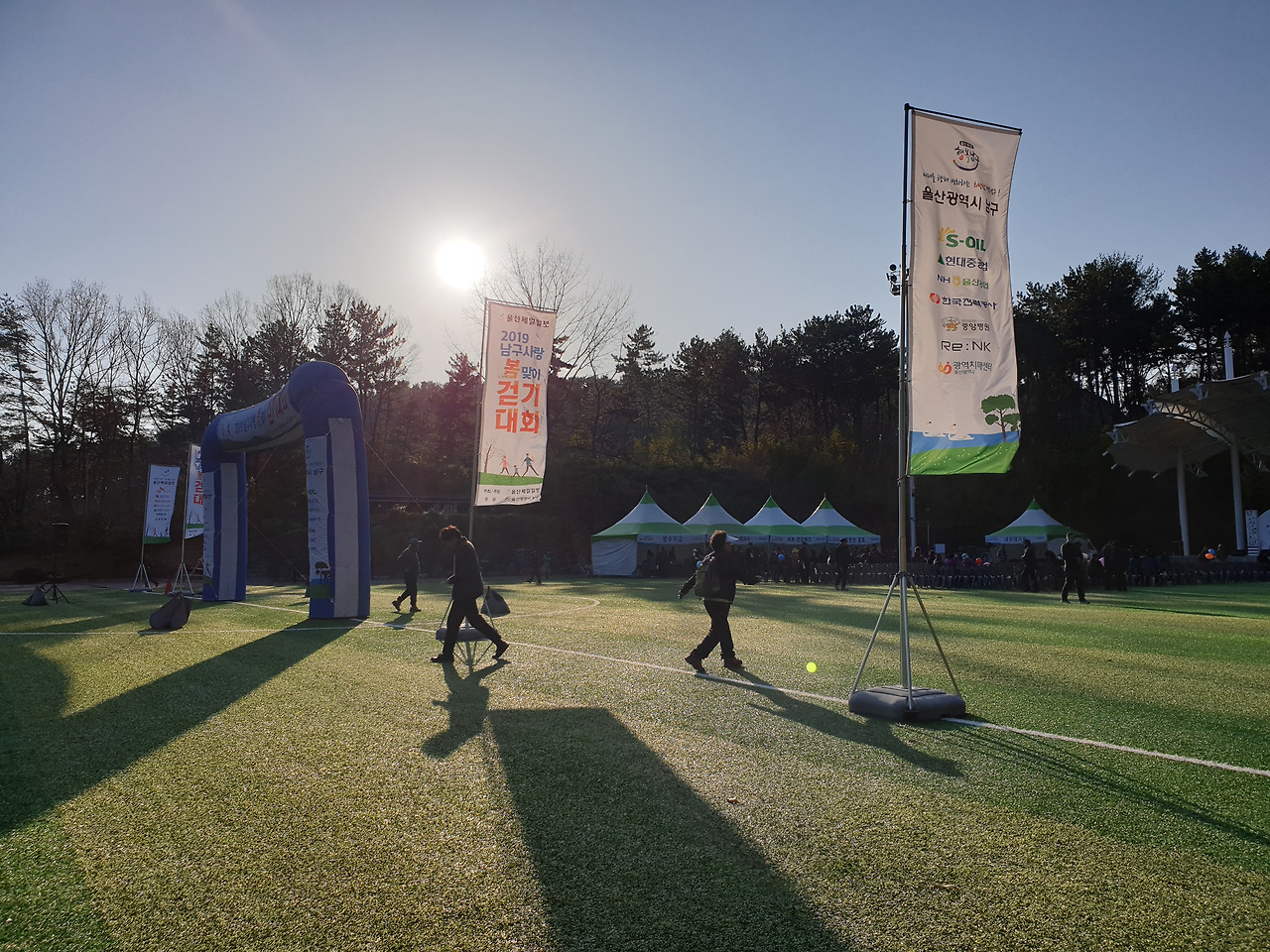 8시 시작인데 한 30분 전에는 가 있어야 하지 않을까? 하이고 7시 반은 너무 일러요. 그래도 8시 시작인데. 그렇게 저렇게 절충하여 나온 시각이 7시 40분. 우리는 7시 40분까지 그 행사가 열리는 축구장에서 만나기로 한다. 처음 참석하는 이런 구청에서 하는 행사. 과연 그냥 걷는 거랑 무엇이 다를까? 여러 사람이 함께 걸으면 훨씬 재미있겠지? 두근두근 새벽부터 일어나 설쳐대며 영 가기 싫어하는 남편을 끌고 정확히 만나기로 한 시각에 축구장에 도착한다.