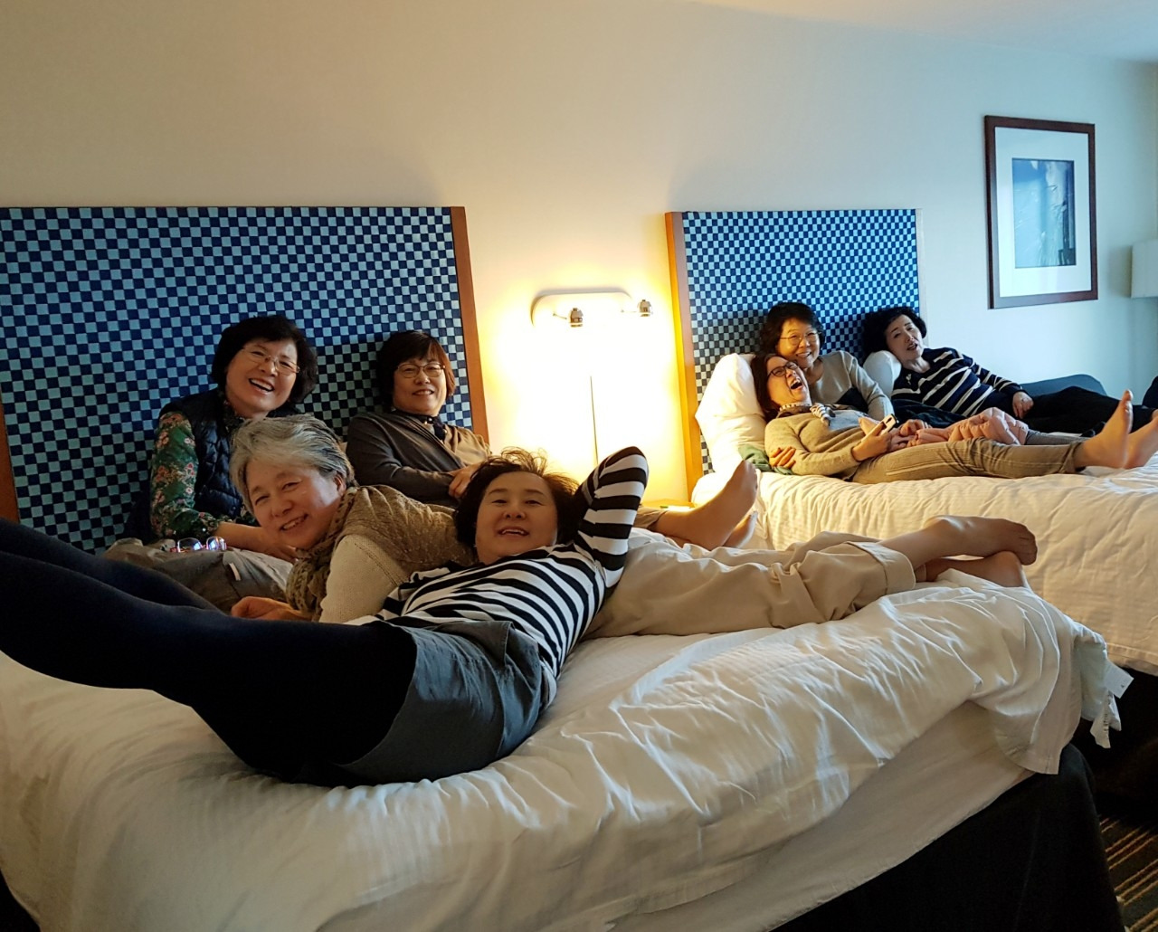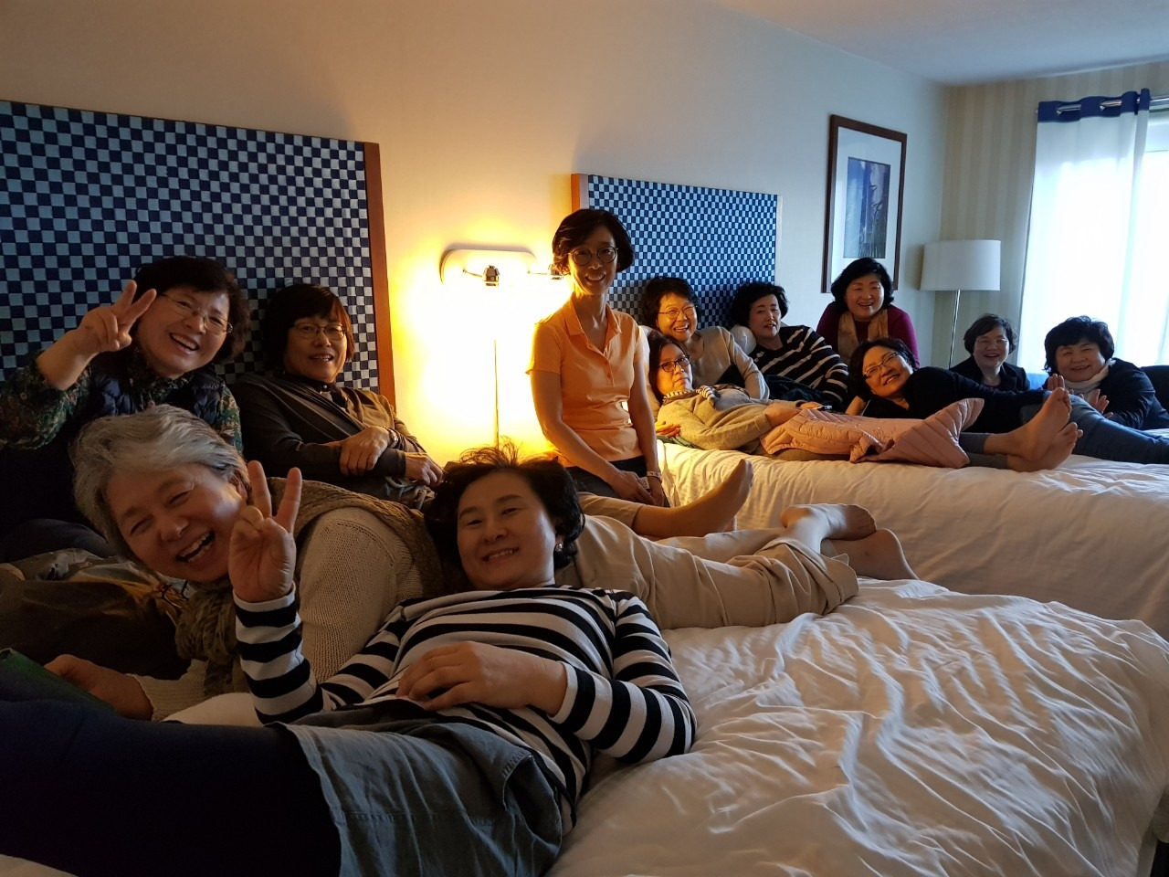 사이트 앤 싸운드 극장 주차장의 멀리멀리서 온 대형 차량들 속에서 겨우 우리 버스를 찾아내 타고 밤 새 달려 포근한 남영이가 기다리고 있는 우리들 스위트홈이 아닌 낯선 호텔에 도착한다. 워싱턴 D.C. 에 있는 호텔. 한적한 시골 느낌이다. 낑낑 낑낑 버스에서 짐을 내려 호텔 안으로 들어간다. 우리들의 스위트홈 뉴저지의 남영이 집에서는 이런 절차가 전혀 필요 없었는데 방을 배정받고 열쇠를 받기까지 기다리고 또 기다리고. 지치고 지친 우리 친구들 기진맥진이다. 관광도 힘드네. ㅎㅎ