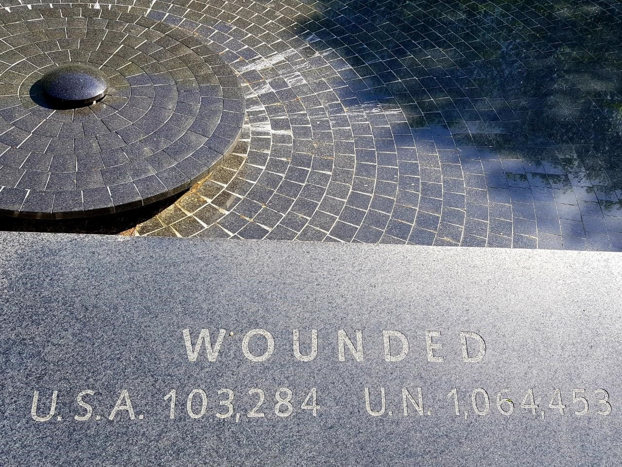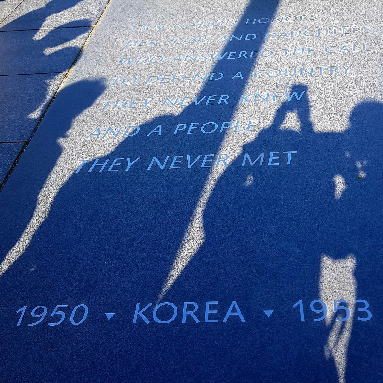 사망, 실종, 부상자들의 숫자가 새겨진 기억의 늪 the Pool of Remembrance 흑백의 차가움으로 묵묵히 묵념하듯 둘러본다. 매력적 군인들이 점차 멀어진다. 다시 활기 찬 우리들 모습으로 돌아가잣. 자~하나 둘 셋 여기를 보세요~ 차르르르르르 셀카 타이머 돌아가는 소리. 미국의 하늘은 이렇게도 파랗단 말인가. 포스트 맥 공원에 있는 한국 참전용사 기념공원을 뒤로하고 앞으로 전진~ 오예!