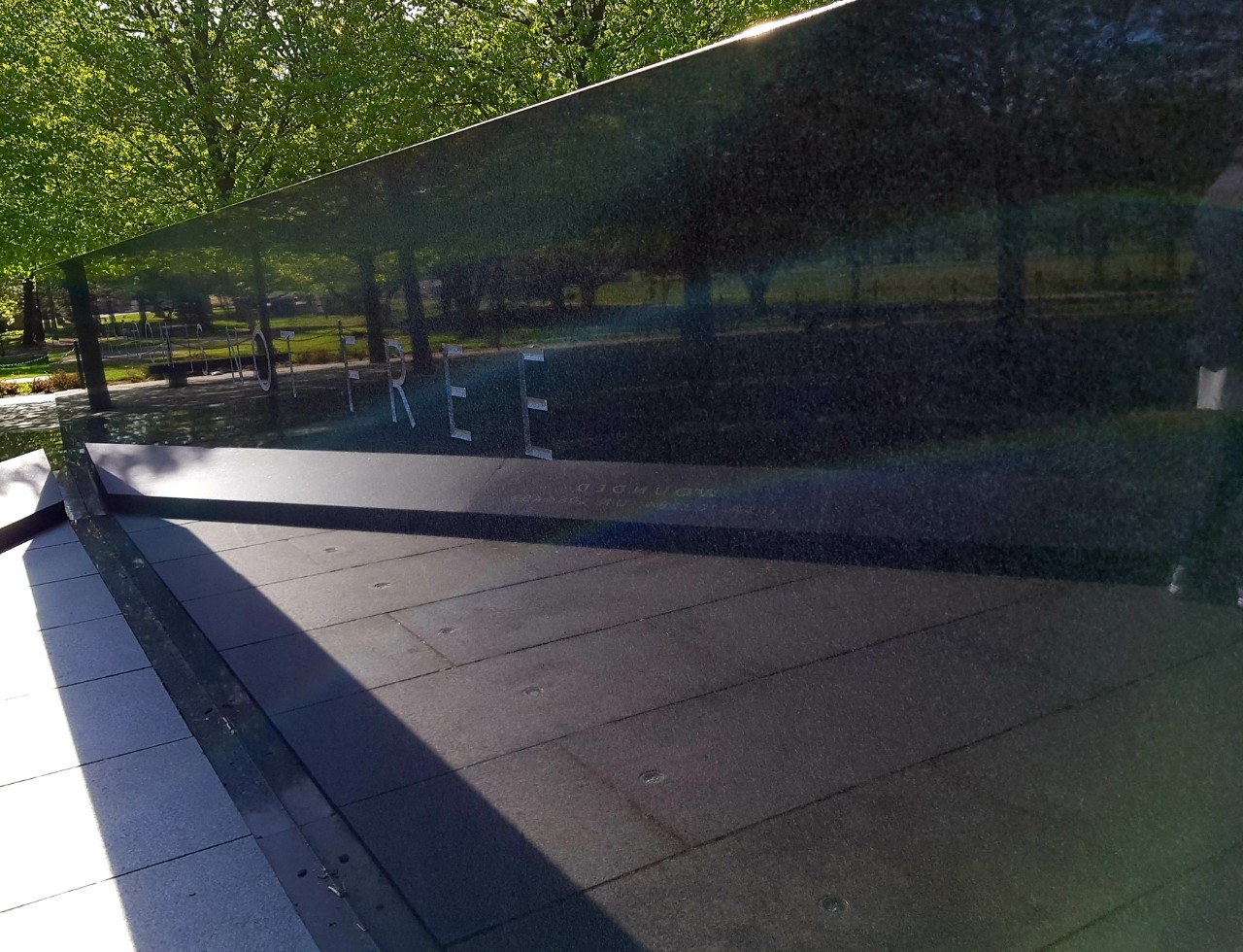 모든 게 있는 그대로 반사되는 유엔의 벽. Freedom is not Free! 자유는 공짜가 아니다!라는 유명한 문구가 씌어 있는 곳 유엔 벽 the United Nations Wall 주미 한국 대사관은 매주 월요일 이 곳에 화환을 보내 감사를 표한단다. 세 번째 사진에 바로 그 화환이 보인다.
