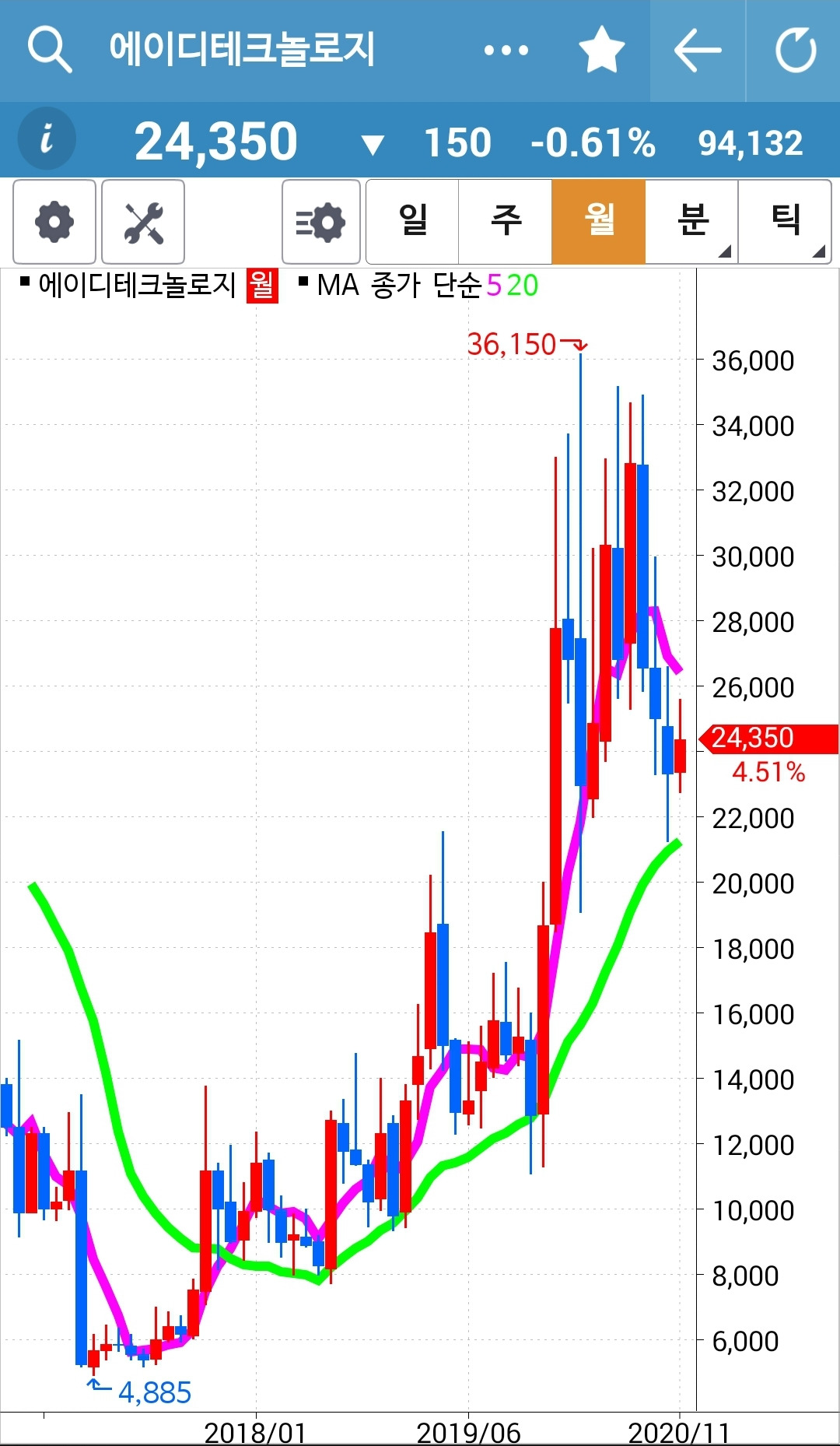 내게 하나 남은 종목 에이디테크놀로지가 이렇게 맥을 못 춘다. 여차하면 5일선이 20일선 아래로 내려올 것도 같다. 제발 그렇게는 되지 말아야 할 텐데. 힘내라. 파이팅!