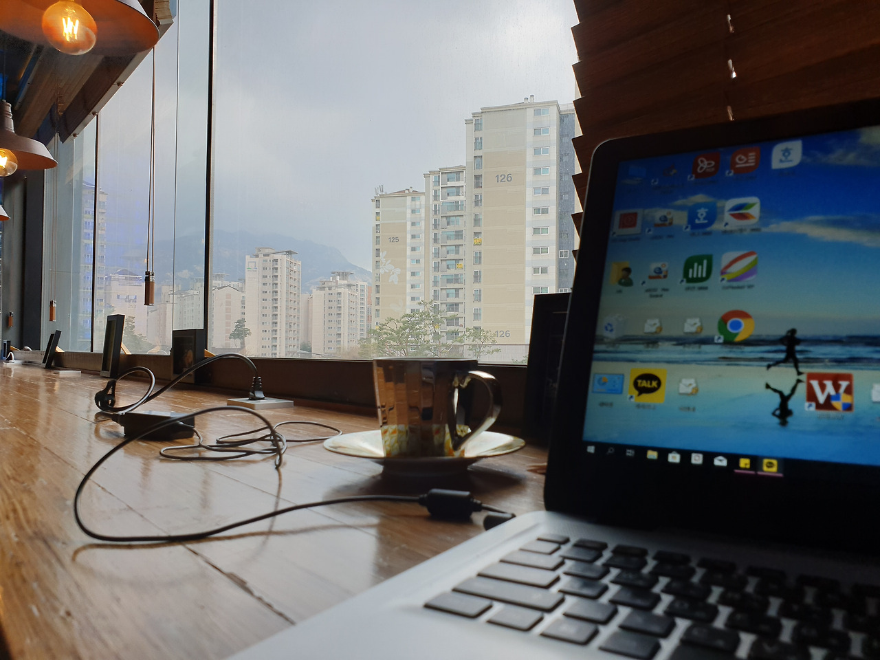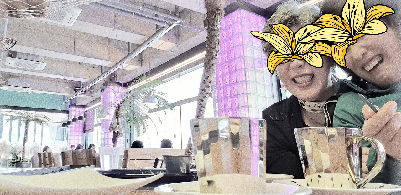 젊은 애들 가득한 드넓은 카페에 60대 할매 둘이 앉아 옛이야기로 깔깔 푸하하하 웃음이 떠나질 않는다. "우리 이 순간을 남겨볼까? 얼짱 각도로 예쁘게 해 봐." 셀프 카메라로 돌려놓고 요렇게 조렇게 폼잡는 우리가 너무 웃겨 하하 푸하하하 막 웃는다. 그렇게 깔깔대다 보니 어느새 시간은 훌쩍 그녀가 회사로 돌아가야 할 시간. 아쉽다. 나는 온 김에 카페에 남아 우리의 귀한 순간을 남겨보려 한다.